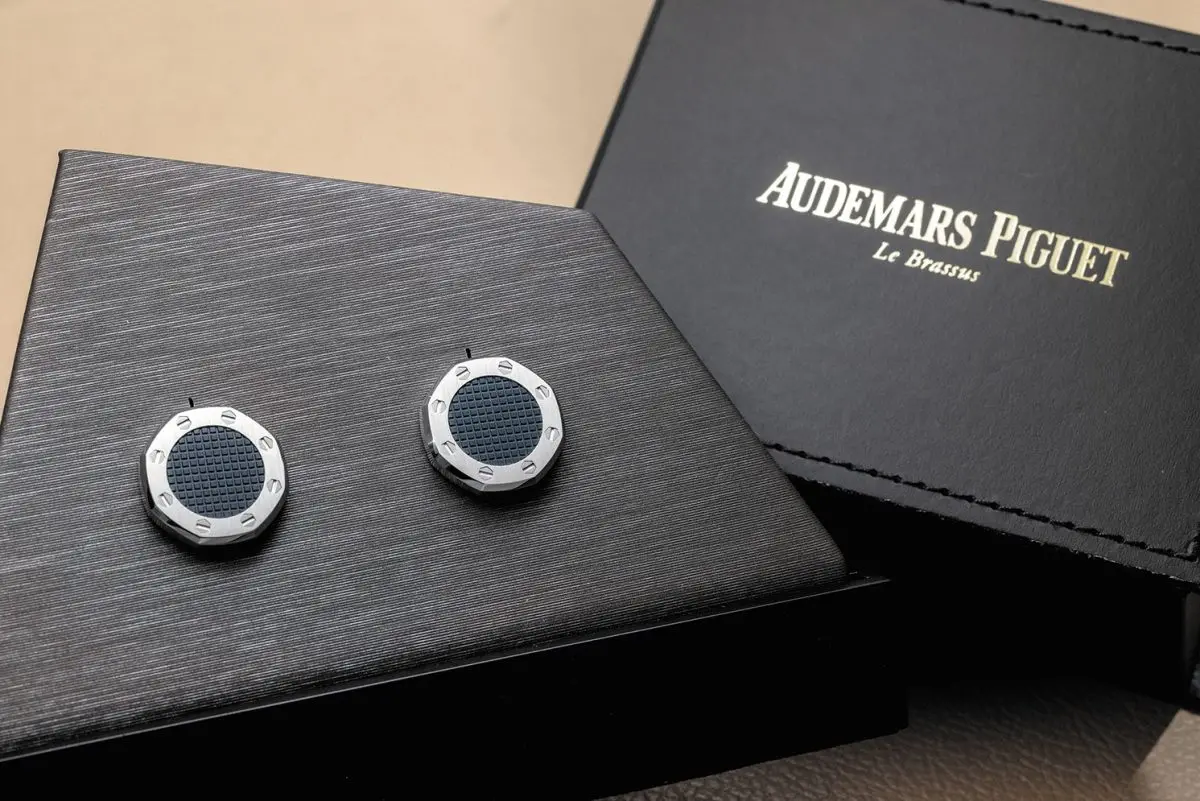 ↑サロンにはオーデマ ピゲのアクセサリーも展開。写真はロイヤル オークをモチーフにしたステンレススチール製のカフリンクス(26万7300円)。