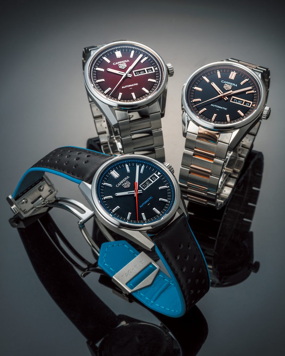タグ・ホイヤー「タグ・ホイヤー カレラ デイデイト」 (左から)Ref.WDA2113.BA0043 60万5000円 Ref.WDA2111.BD0001 126万5000円 Ref.WDA2110.FC6614 59万9500円