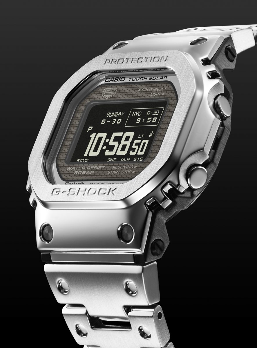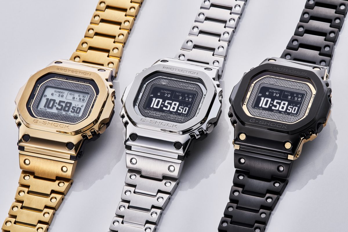 そして40年以上にわたる歴史の中で、初号機「DW-5000C」から纏ってきたスクエアフォルムを特徴とする「オリジン」はアイコニックなコレクションとして現在も君臨しており、ブランド設立35周年を迎えた2018年には初めてのフルメタルシリーズGMW-B5000がデビューした。それまで高級ラインにあたる「MR-G」や「MT-G」ではメタル外装の採用例があったが、スクエアフォルムでの実現には重量と耐衝撃耐性との兼ね合いがあって困難であったものの、緩衝材となる樹脂パーツの機能的進化や設計の見直しによって課題を克服し、GMW-B5000は完成へと至った。結果、このシリーズは大成功を収め、ロングセラーを記録している。
