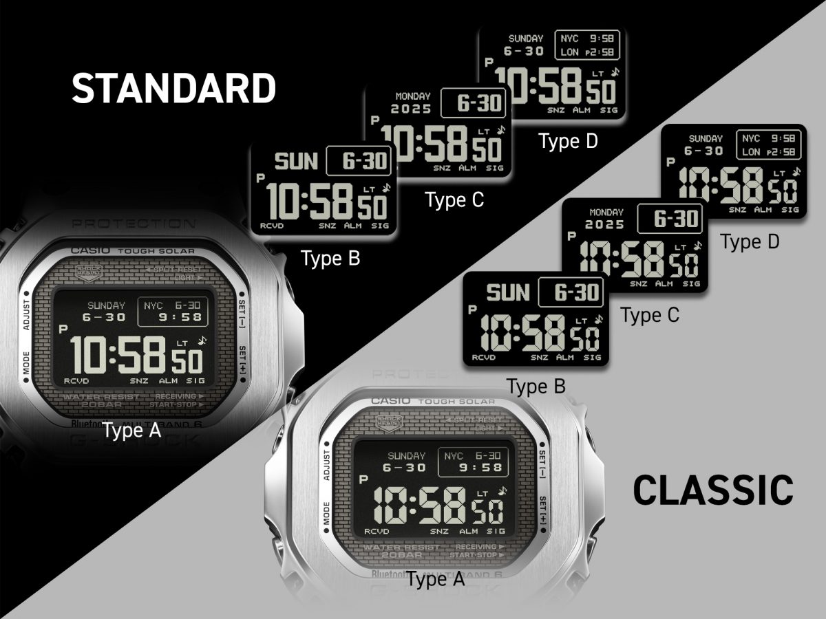 「2種類のフォントは、社内外のヒアリングやアンケートで、G-SHOCK伝統の7セグ風クラシックフォントのほうが落ち着く、無機質すぎない温かみがあるといった声が多く寄せられたため、あえて“クラシック”と“現代的ラインのスタンダード”を選択できる仕様としました。クラシックは初代G-SHOCKの記憶を継承する安心感を与え、スタンダードは視認性やモダンデザインとの親和性を重視した仕様です。この両軸をユーザーニーズに合わせて切り替えてご使用いただけます。使い分けを楽しんでいただけたら幸いです」