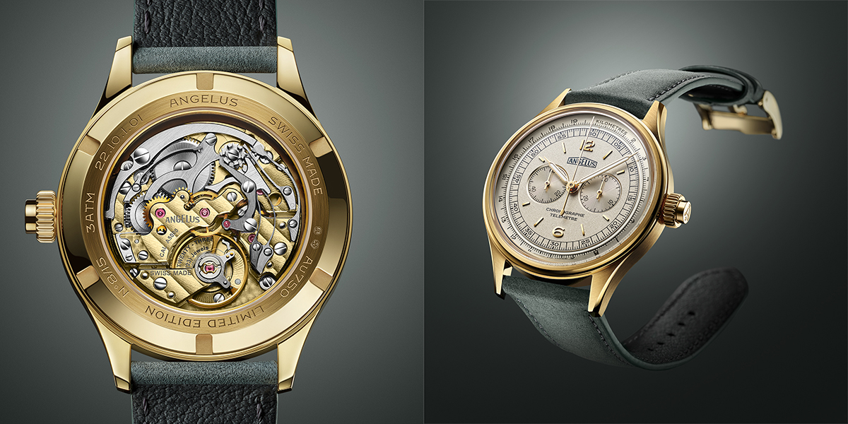 アンジェラスの新作としてはテレメーターのゴールドモデルがあるのですが、こちらはすでにジュネーブで見ていただいたかと思います。このモデルは37mmのサイズ感やデイトのない文字盤、ヴィンテージルックに、テクニカルな手巻きクロノグラフムーブメントなど、多くの面で時計愛好家の方からとても良いリアクションをいただき、GPHGのクロノグラフ部門にもノミネートされました(※編集部注:インタビュー後に行われたGPHG(ジュネーブ ウォッチ メイキング グランプリ)授賞式にて、見事クロノグラフ部門で賞を獲得!)。ステンレススティールのモデルはすでに完売しており、ゴールドのモデルも今回の来日に伴うショップでのイベントで最後の1本が完売しました。