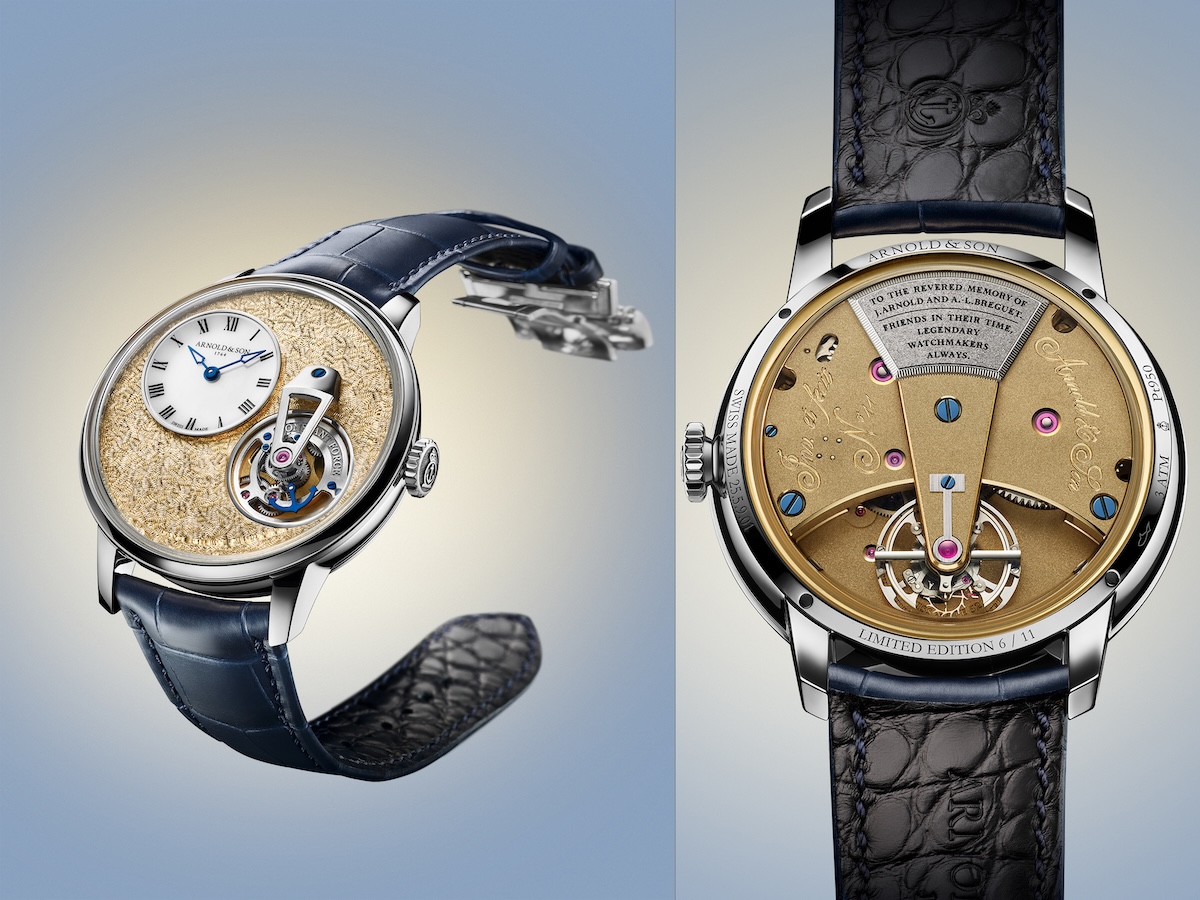 アーノルド&サン「DSTB 42」(Pt)Ref.1ATCX.U01A.C0263X(RG)Ref.1ATCR.F01A.C1242A、ともに日本発売未定 自動巻き(キャリバーA&S6203)、毎時2万8800振動、55時間パワーリザーブ。18Kレッドゴールド、またはプラチナケース(いずれもシースルーバック)。直径42mm、厚さ12.95mm。アリゲーターストラップ。3気圧防水。各世界限定18本。