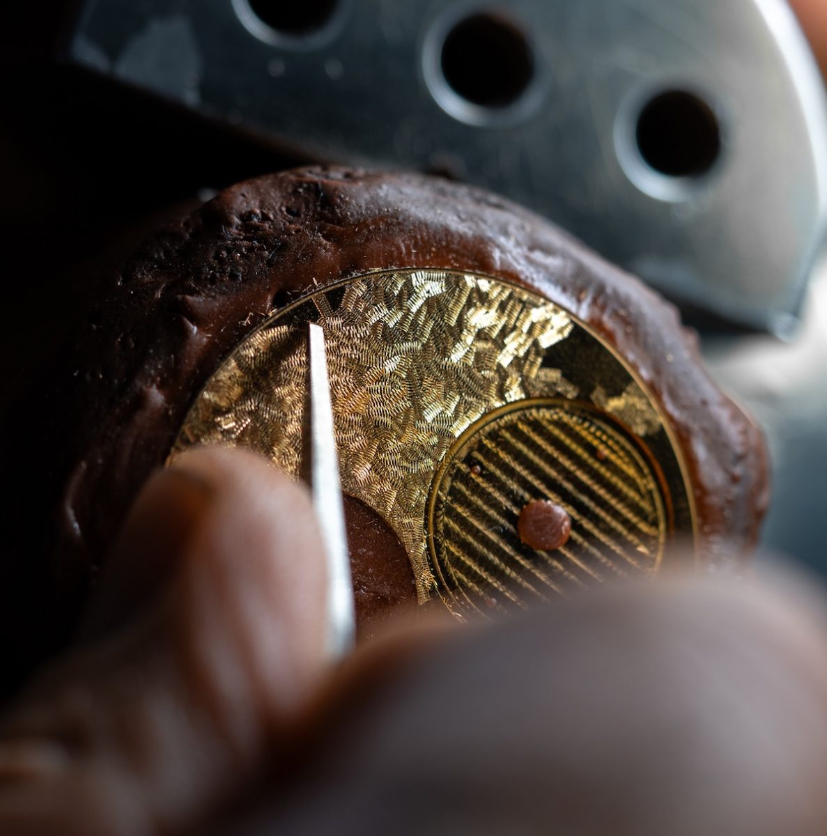 オベール氏:2025年のウォッチズ&ワンダーズで披露したのはイエローゴールドケースでしたが、新作ではプラチナで11本を製作しました。文字盤はソリッドゴールドにトランブラージュ仕上げを施しました。模様のモチーフは、ジョン・アーノルドが生まれたイギリスのコーンウォール地方の植物に由来しています。職人が完全に手作業で彫金を施しているため、ひとつとして同じ模様はありません。