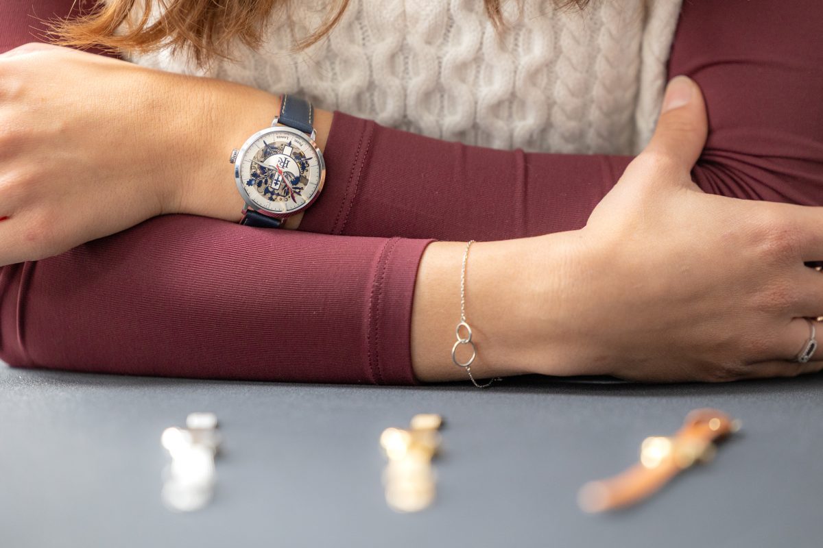 ピエールさん:10年前に機械式時計を強化しようと思ったのは、スマートウオッチが台頭してきたからです。クオーツはおそらく苦しい状況になるかもしれないけれど、機械式時計のような情緒のあるトラディショナルなアイテムはその魅力が見直されていくと考えたんです。その中でも「買い求めやすい価格を維持した大人のための時計を作ろう」というのが、ブランドの方針となっています。うまく軌道に乗せることができたのは、費用対効果の高いMIYOTAのムーブメントのおかげでもありますね。それ以外にも、ピエール・ラニエは新作についても日本からの要望を受けて開発したものがありますよ。こちらのブレスレットはストラップ幅が8mmのもので、日本から長らくリクエストのあった小型サイズを製品にしました。いまはコンパクトな時計の需要が高まっているので、ピエール・ラニエでもラインナップに加えることにしたのです。といっても、小さな腕時計についての要望は、日本からずっと受けていたんですけどね(笑)。