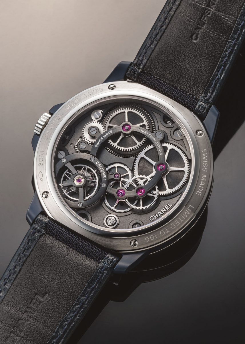 シャネル「ムッシュー ドゥ シャネル スーパー レッジェーラ ブルー エディション」 Ref.H10336 価格要問い合わせ/自動巻き(Cal. 1)、毎時2万8800振動、約72時間パワーリザーブ。高耐性セラミック+ステンレススチールケース(シースルーバック)。直径42mm。30m防水。