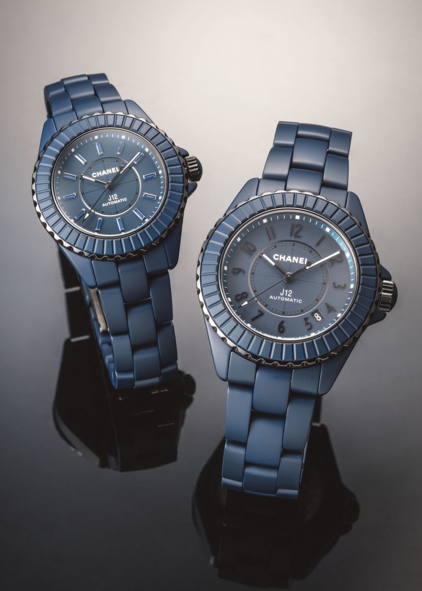 当時のアーティスティック・ディレクターのジャック・エリュが手掛け、2000年にシャネルが衝撃的なセラミックウオッチ「J12」を発表してから2025年で25年。この四半世紀の節目を祝し、メゾンは“白でもない、黒でもない”、第3の色としてブルーを「J12」に与えることとなった。このアニバーサリーに関連した「J12」は、高耐性マットブルーセラミックモデルが8本と、ブルー サファイアのモデルが1本で、すべて限定となる。