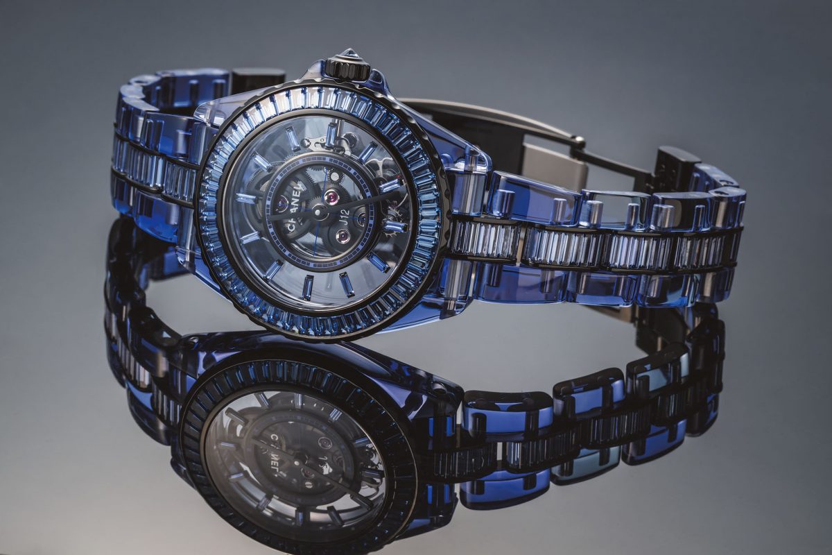 シャネル「J12 BLEU X-RAY」 Ref.H10337 価格要問い合わせ/自動巻き(Cal. 3.1)、毎時2万8800振動、約55時間パワーリザーブ。ブルー サファイアクリスタル+18Kホワイトゴールドケース(シースルーバック)、ブルー サファイアクリスタル+18Kホワイトゴールド+ブルーサファイアブレスレット。直径38mm。30m防水。