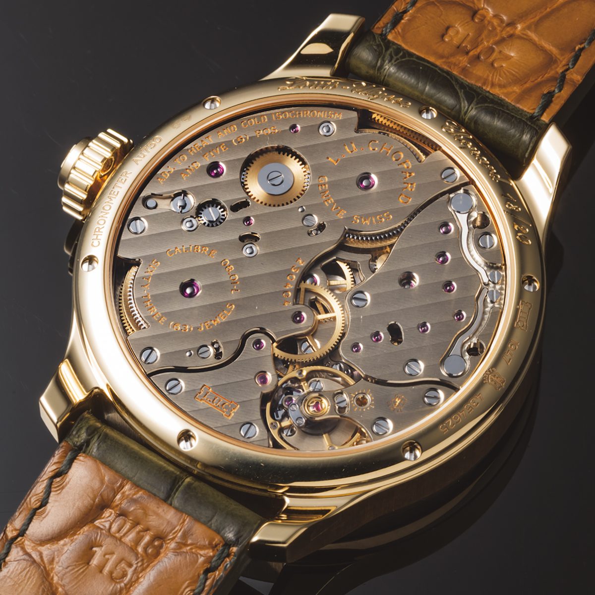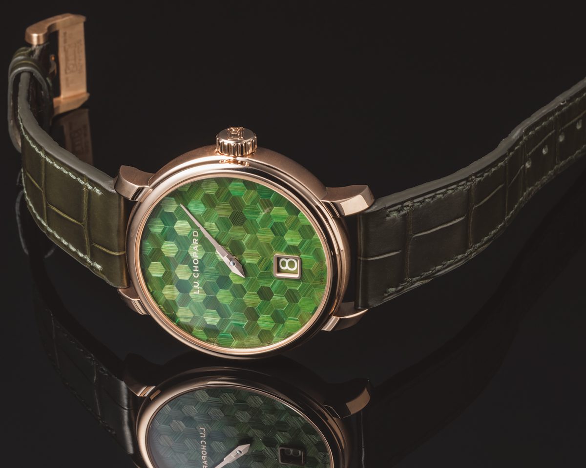 スペック:手巻き(Cal.L.U.C 98.09-L)、毎時2万8800振動、約216時間パワーリザーブ。18Kエシカルローズゴールドケースまたはプラチナケース(シースルーバック)、アリゲーターストラップ(交換用カーフストラップが付属)。直径39mm、厚さ10.4mm。30m防水。