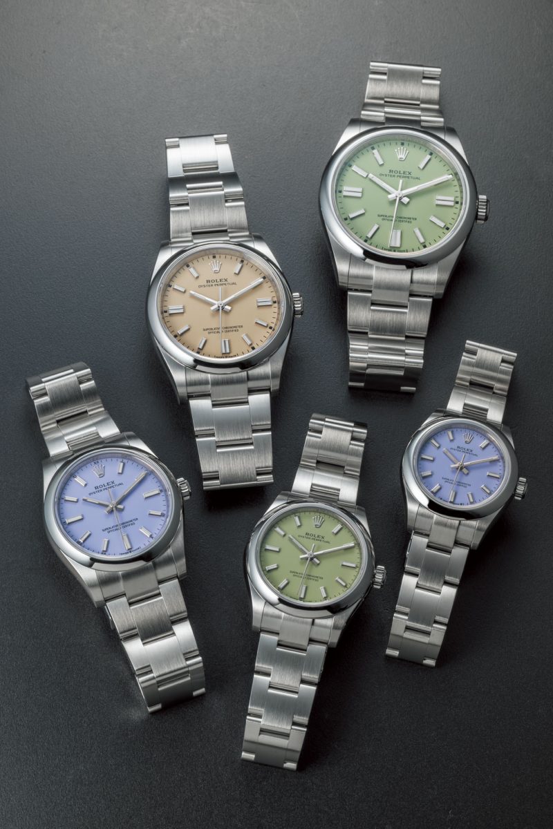 スリムになったケース&クラスプを筆頭に細部を熟成させ、よりエレガントなスタイルを獲得した41mm径モデルの登場と合わせ、新色ダイアルを発表。柔らかな雰囲気を持つマットなサンドベージュ、ラベンダー、ピスタチオのカラーバリエーションが加わり、3針ウオッチの王道コレクションがその魅力をさらに増した。