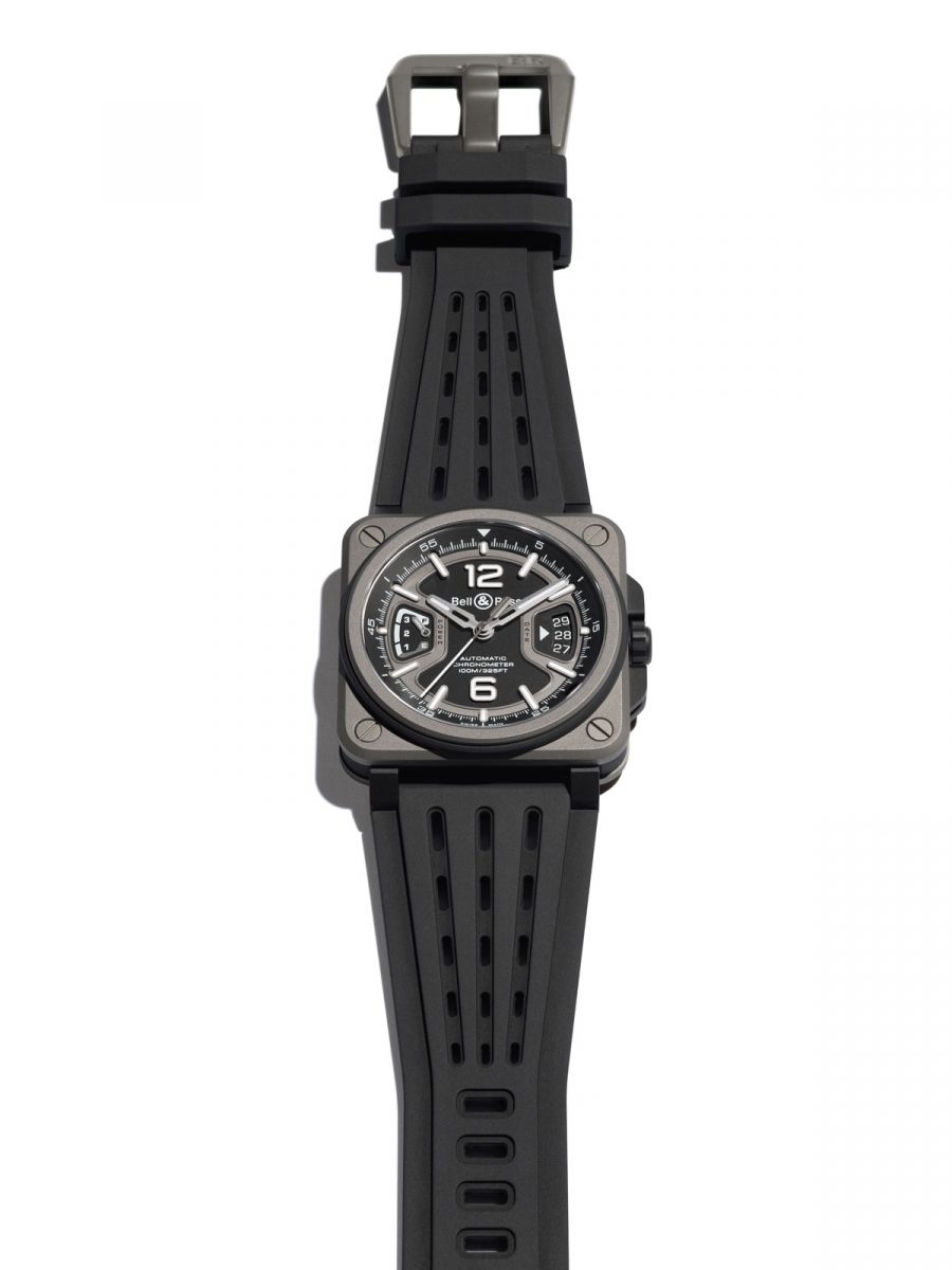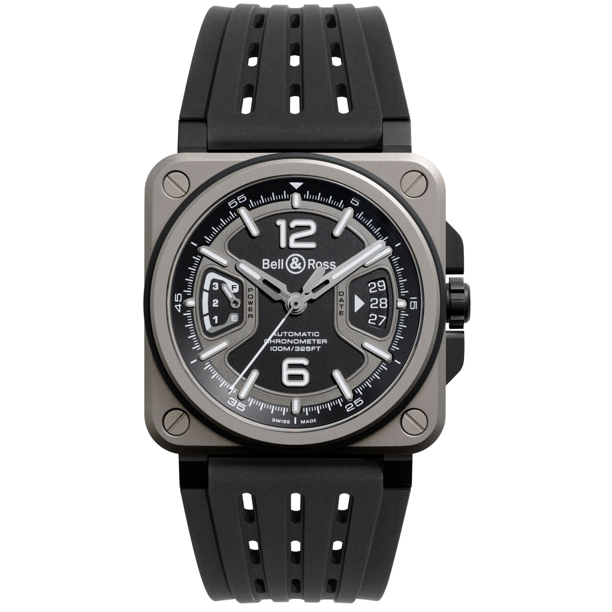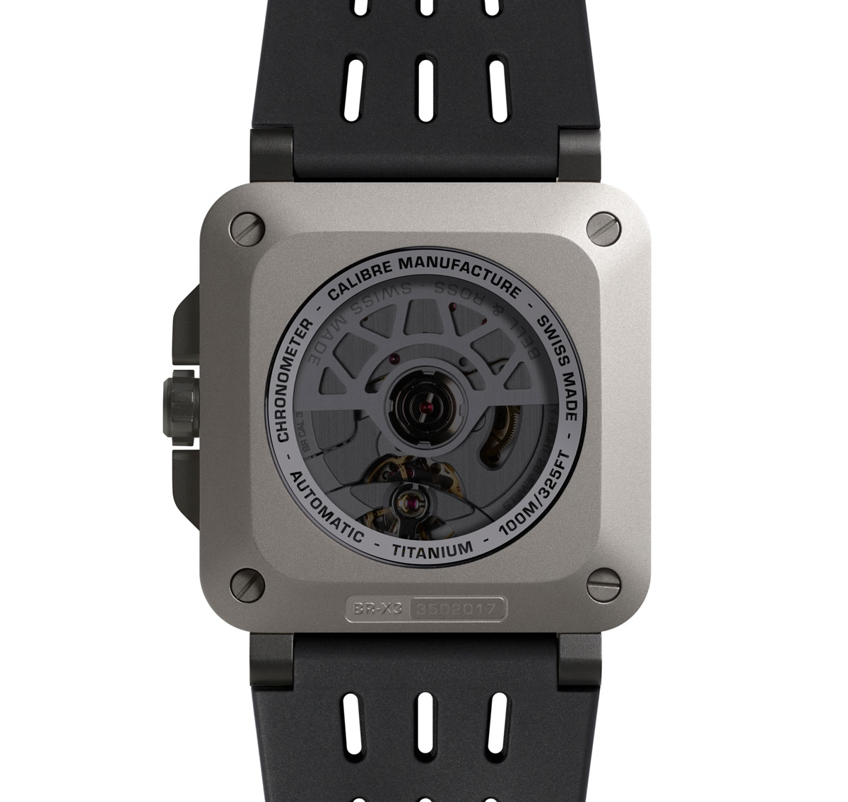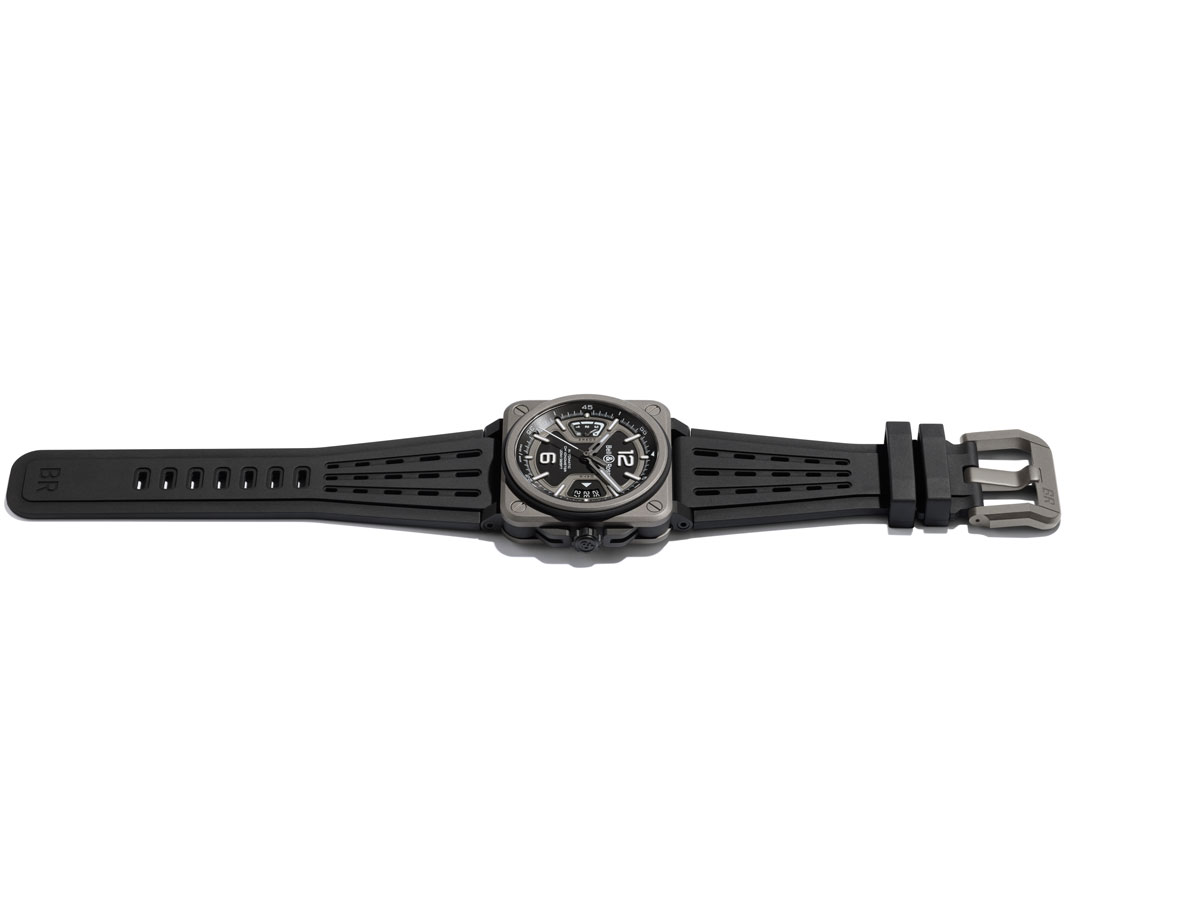 ベル&ロス「BR-X3 ブラック チタニウム」 Ref.BRX3R-BL-TI/SRB 124万3000円/自動巻き(BR-CAL.323)、約70時間パワーリザーブ。チタンケース(シースルーバック)、ラバーストラップ、サファイアクリスタル風防(反射防止加工)。直径41mm、厚さ13.3mm。10気圧防水。