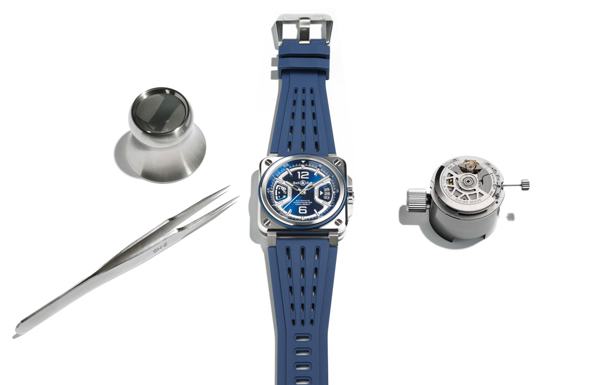 両モデルの心臓部には、約70時間のパワーリザーブを誇る自動巻きムーブメント、キャリバーBR-CAL.323を搭載。ベル&ロスのためにケニッシ社が特別に開発したムーブメントであり、スイス公式クロノメーター検定機関(COSC)の認定を取得し、精度の高さは折り紙付きだ。さらに5年間の保証も付帯し、実用性と安心感を兼ね備えたムーブメントとして所有者の信頼に応える。裏蓋はシースルー仕様となるため、時計を裏返せば、キャリバーBR-CAL.323の仕上げの美しさと精緻な構造をじっくりと鑑賞可能だ。