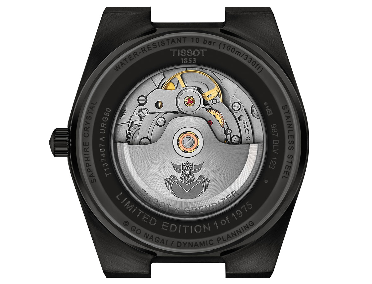ティソ「ティソ PRX 40mm UFOロボ グレンダイザー 50周年スペシャルエディション」 Ref.T137.407.33.051.01 15万3450円/自動米(Cal.パワーマティック 80)、最大80時間パワーリザーブ。ステンレススチールケース(シースルーバック)&ブレスレット、サファイアクリスタル風防(無反射加工)。直径40mm、厚さ10.93mm。10気圧防水。