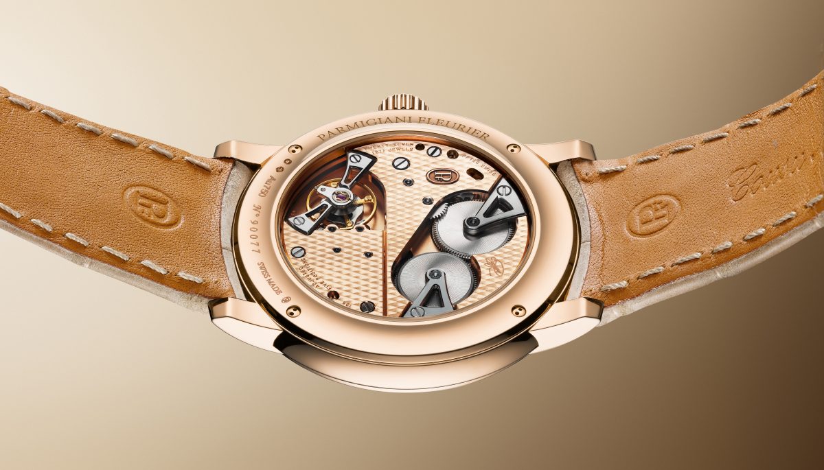 パルミジャーニ・フルリエ「トリック プティ・セコンド ローズゴールド・デューン」 Ref.PFC940-2010002-300181 740万3000円/手巻き(Cal.PF780、自社製)、毎時2万8800振動、約60時間パワーリザーブ。18Kローズゴールド製ケース(シースルーバック)、アリゲーターレザーストラップ。直径40.6mm、厚さ8.8mm。30m防水。