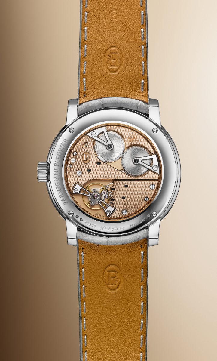パルミジャーニ・フルリエ「トリック プティ・セコンド プラチナ ゴールデンアワー」 Ref. PFC940-2010003-300181 854万7000円/手巻き(Cal.PF780、自社製)、毎時2万8800振動、約60時間パワーリザーブ。プラチナ950製ケース(シースルーバック)、アリゲーターレザーストラップ。直径40.6mm、厚さ8.8mm。30m防水。