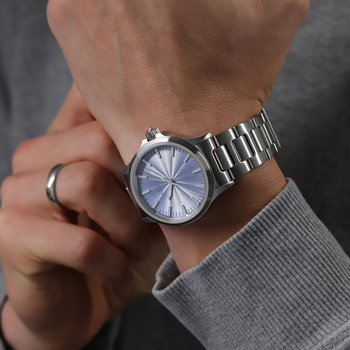 ジン「556 アイスブルー」 50万6000円/自動巻き(Cal.SW200-1)、毎時2万8800振動、38時間パワーリザーブ。ステンレススチールケース(シースルーバック)&ブレスレット、サファイアクリスタル風防(両面無反射加工)。直径38.5mm、厚さ11mm。20気圧防水。世界限定300本。