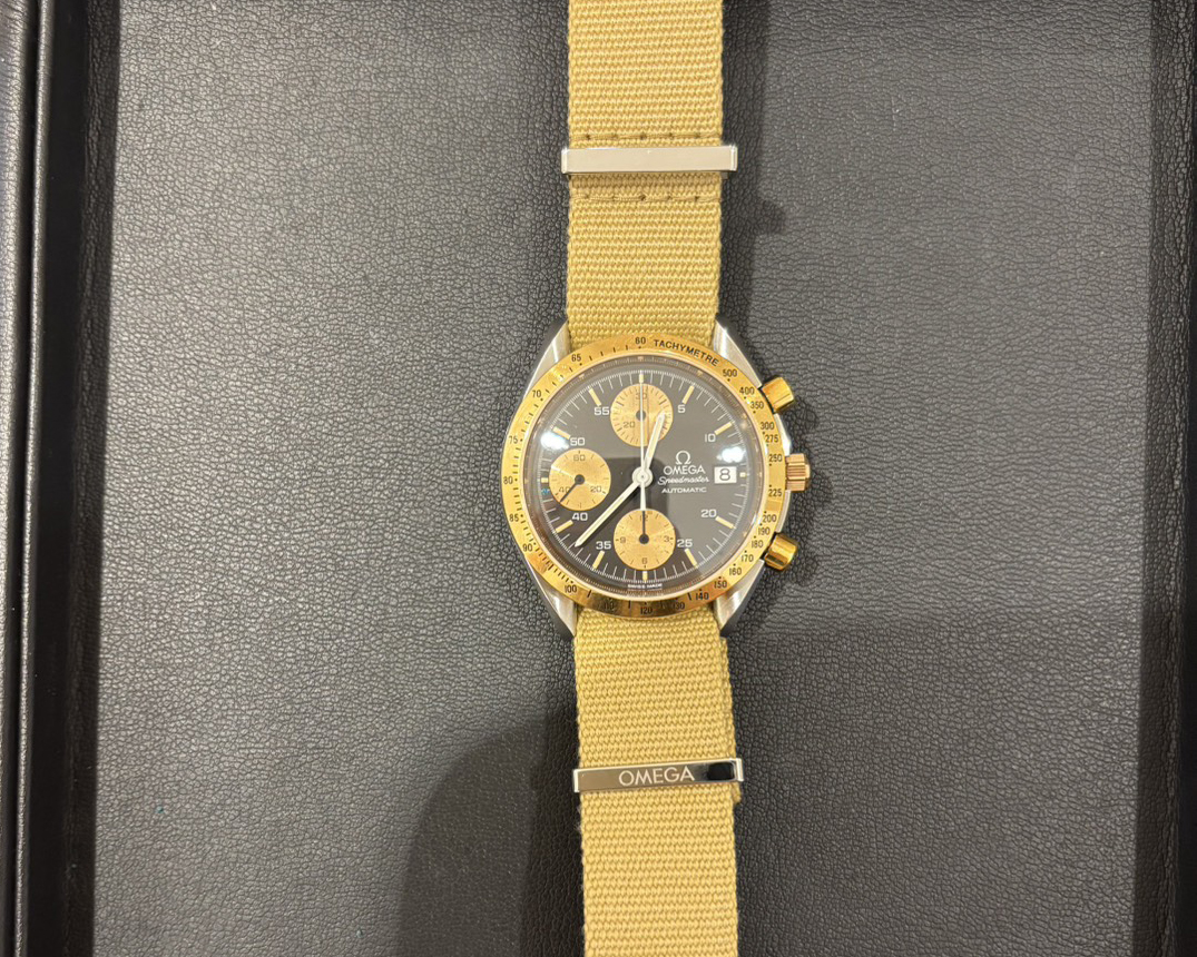 この取材の場には別の編集者も居合わせており、ストラップ交換の予定はなかったものの取材しているうちに心が動いたようだ。左腕から愛機のオメガ「スピードマスター」を外し、猪羽さんの見立てのもと、カイマンのアッシュグレーに交換することに。オメガ純正のNATOストラップもスタイリッシュだったが、「少しフォーマルな印象にしたいと思っていた」という本人の希望が、思いがけずこの場で叶うことになった。