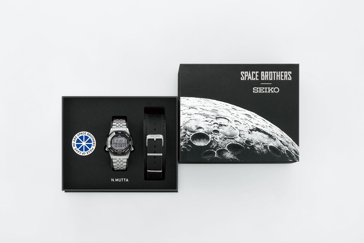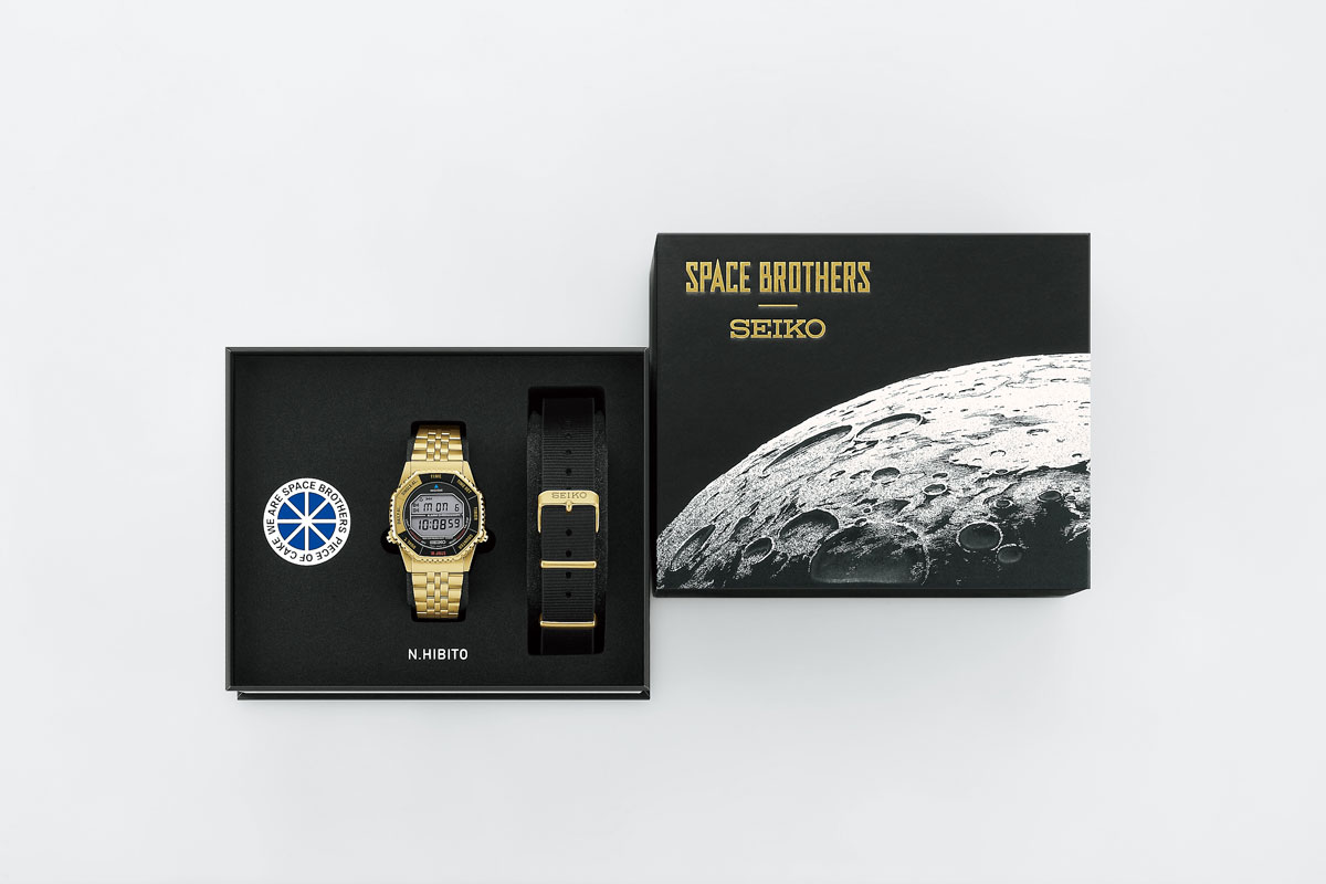 SBJG023は兄・南波六太(ムッタ)の宇宙服をイメージし、シルバーカラーのケースに八角形を強調するブラックを組み合わせたデザイン。SBJG024は弟・南波日々人(ヒビト)の宇宙服“ロシアンライトニングゴールド”をモチーフに、ゴールドカラーで統一した。両モデルとも、宇宙空間での着用を想起させるナイロンストラップが付属する特別仕様である。裏蓋には、“WE ARE SPACE BROTHERS PIECE OF CAKE”のシンボルマークを刻印し、『宇宙兄弟』の世界観を表現。限定モデルの証として「LIMITED EDITION」とシリアルナンバーを刻む。さらに、兄弟が再会するシーンを描いたスペシャルボックスに収められるなど、コレクターズアイテムとしての完成度も高い。