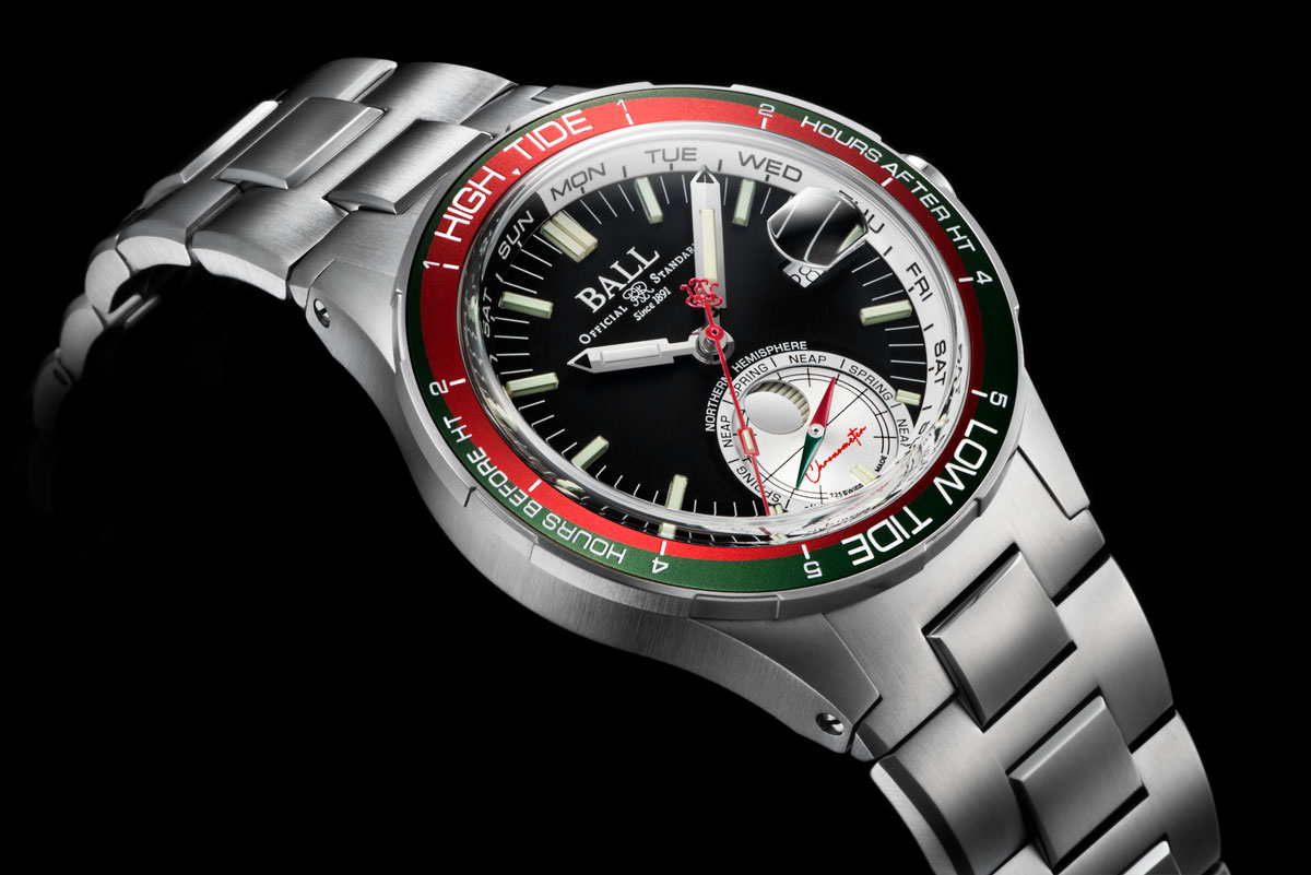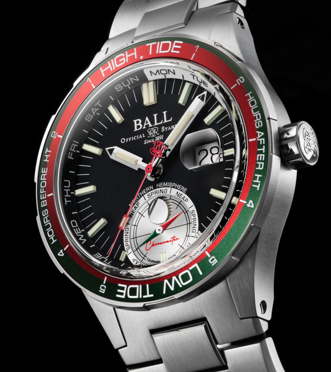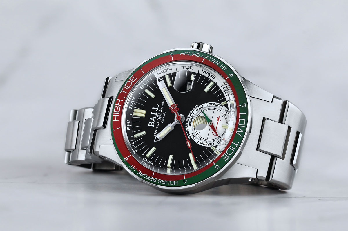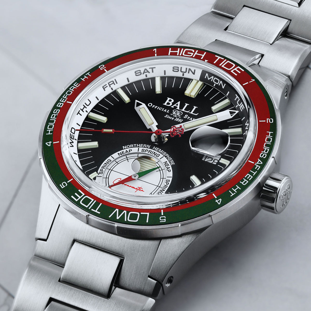 堅牢で信頼性の高い機械式時計を展開するボール ウォッチは、機械式時計としては極めて稀少な「満潮・干潮」および「大潮・小潮」の潮汐表示機構を搭載した「オーシャン エクスプローラー」の新カラーバリエーションが登場。価格は52万8000円(税込)。