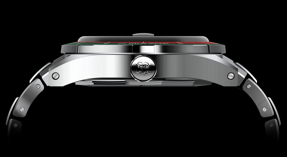 ケースには高耐久の316Lステンレススチールを採用。サンドブラスト、ブラッシュ、ポリッシュの3種類の仕上げが選べる。風防には無反射コーティングを施したサファイアクリスタルを使用し、視認性と耐傷性を両立する。ストラップは、ツール不要のクイックリリースシステムにより、簡単に交換できる。航空機の翼の空気流に着想した新設計のラバーストラップや、人間工学に基づいた薄型メタルブレスレットに簡単に着せ替えられる。