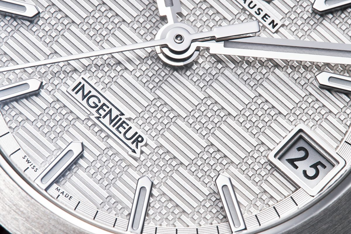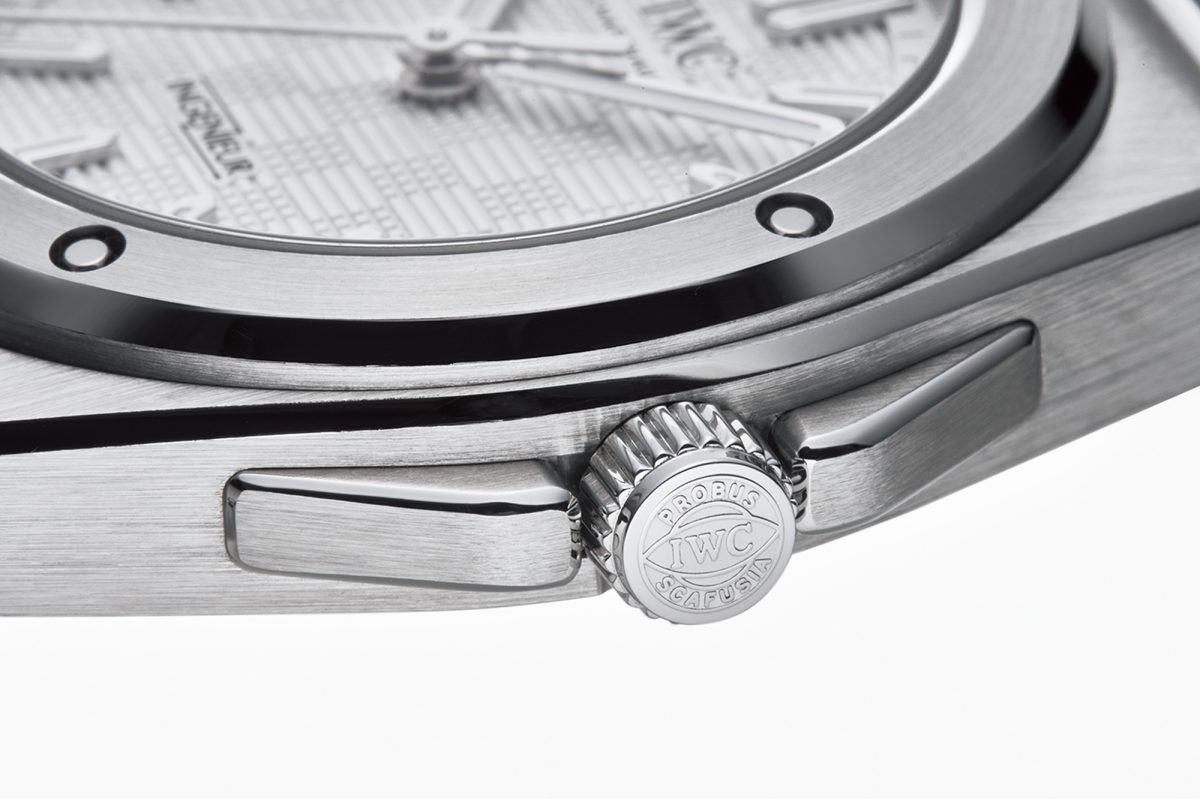 2023年に発表された「インヂュニア・オートマティック40」は、これまでベゼルをねじ込むために空けられていた窪みを固定ビスに変更。リューズガードを備え、よりスポーティなルックスを強めた。厚みは10.7mmにまで抑えつつ、文字盤のグリッドパターンで時計に格別の立体感を与えることにも成功。120時間パワーリザーブを誇る次世代定番のキャリバー32111を搭載し、それを耐磁シールドで保護することで堅牢スペックも兼ね備えた。