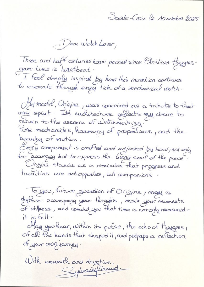 そして、今回の展示を語るうえで欠かせないのが、各時計メーカーから寄せられた「350周年を祝う直筆レター」の存在である。「Dear Watch Lover,」と題されたこれらの手紙には、時計師や経営者が自らの言葉で、作品に込めた想い、時計づくりへの哲学、そして未来のオーナーへの温かなメッセージを綴っている。展示として会場で読むことができるほか、時計を購入した来場者には、このサイン入りレターが贈られる。この取り組みは、単に時計を“モノ”として販売するのではなく、その背後にある作り手の精神性を共有するための特別な体験となるだろう。