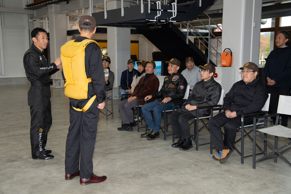 翌26日は悪天候により、飛行プログラムは安全面から中止となった。しかしCHALLENGE FLIGHTの本質は“飛ぶことだけ”ではない。参加者は以下の多彩なコンテンツを通じ、空への理解を別角度から深めることができた。(室屋選手による航空用回転計算尺講座、実機を前にした機体解説セッション、フライトシミュレーター体験、プロカメラマンによる腕時計フォトセッション)。こうしたプログラムは、単に技術体験に留まらず、航空文化をより広く、深く知るための貴重な機会となった。