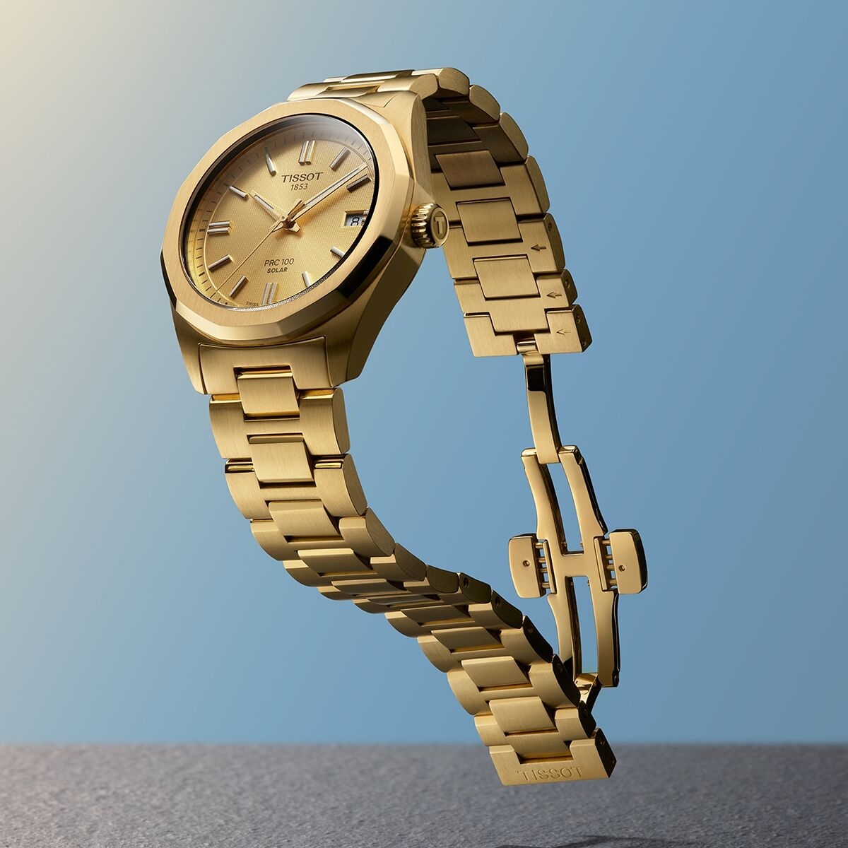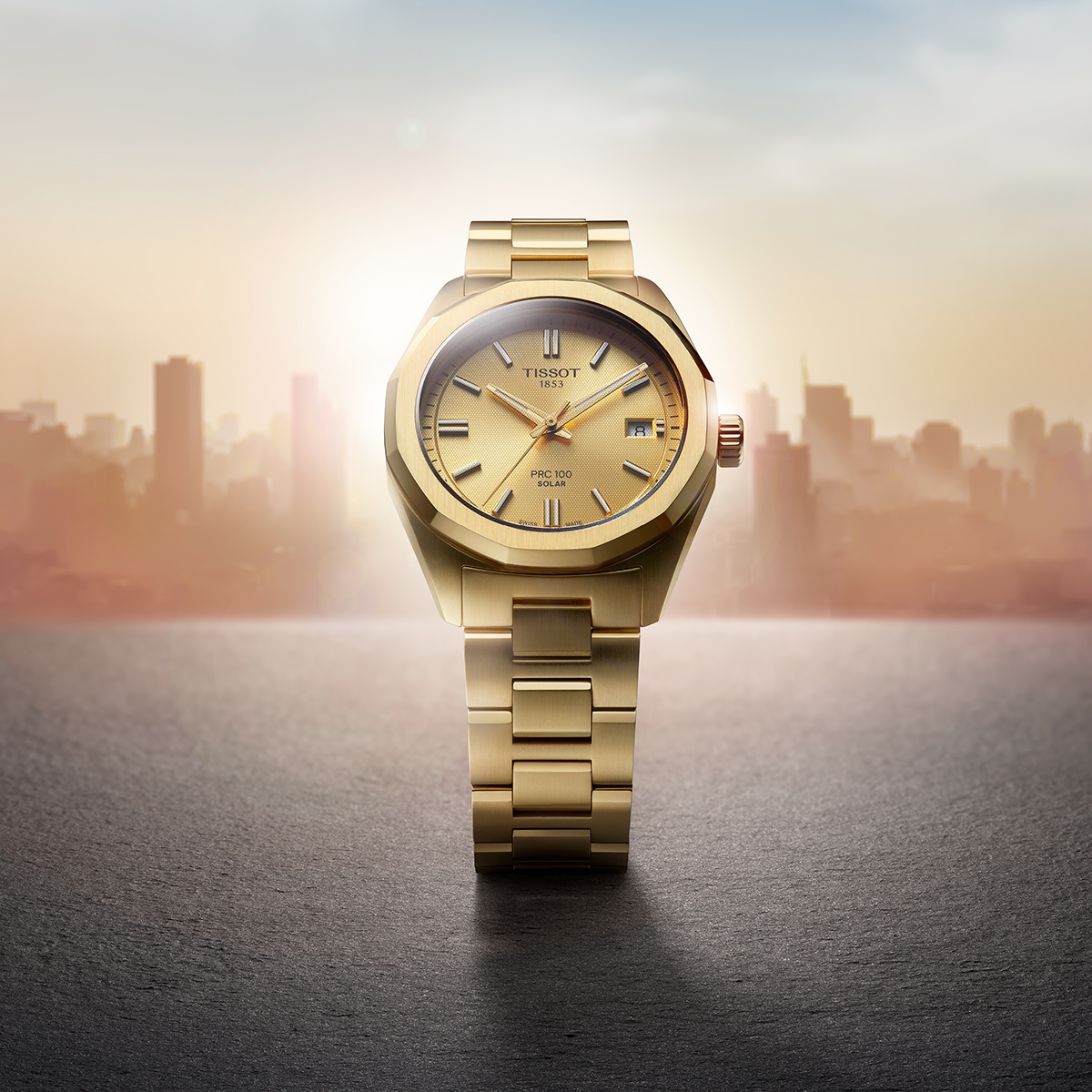 PRC 100 ソーラーは、ティソの革新を象徴するコレクションである。「ライトマスター ソーラー テクノロジー」により、サファイアクリスタルを通過する自然光のみならず人工光も微細なソーラーセルを通じてエネルギーに変換し、再充電可能なアキュムレーターに蓄電する。太陽光が乏しい環境下でも人工光により充電を維持できる。精度においてもクォーツムーブメントは揺るぎない正確さを保証し、最適化された消費電力により長時間の動作が可能である。フル充電時には暗闇でも14か月間の連続駆動を実現する。耐久性に優れた設計により、標準の2年間に加えさらに1年間、合計3年間の延長保証が付帯され、長期にわたる信頼と安心を提供する。