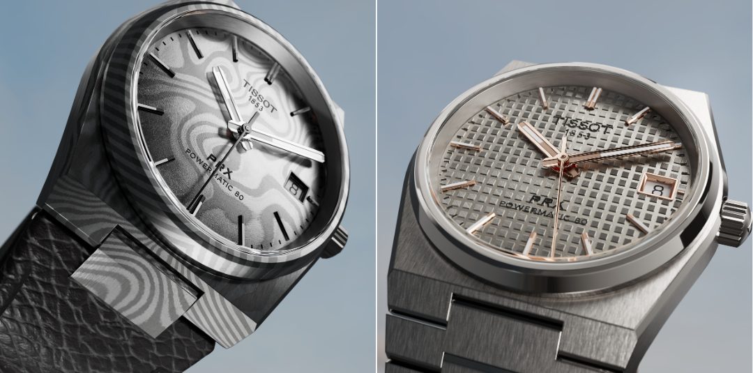 ティソのPRXコレクションより、画期的な新素材を採用した38mmケース径の自動巻きモデル3型が登場。今回登場するのは、PRXコレクションとして初めて軽量かつ高強度で知られるチタニウムを採用した2モデル、そしてティソとして初めて、質感と深みを併せ持つダマスカス・ステンレススチールを用いた1モデルである。