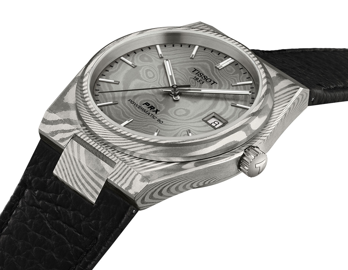 1978年に誕生したティソ PRXコレクションは、当時、スタイルと耐久性の両立を求める人々のために開発された。“PRX”とは、Precision(精密さ)、Robust(堅牢さ)、10気圧防水を意味する“X”の頭文字を組み合わせた名称であり、洗練されたデザインの中に確かな信頼性を備えたコレクションである。2021年のリバイバル以降、PRXはステンレススチール製のシャープなケースと一体型ブレスレットが描く滑らかなラインで注目を集め、モダンクラシックとしての地位を確立した。チタニウムとダマスカス・ステンレススチールを採用した新モデルは、PRXの大胆なスピリットを称えつつ、時計製造の新たな可能性を切り拓くタイムピースである。