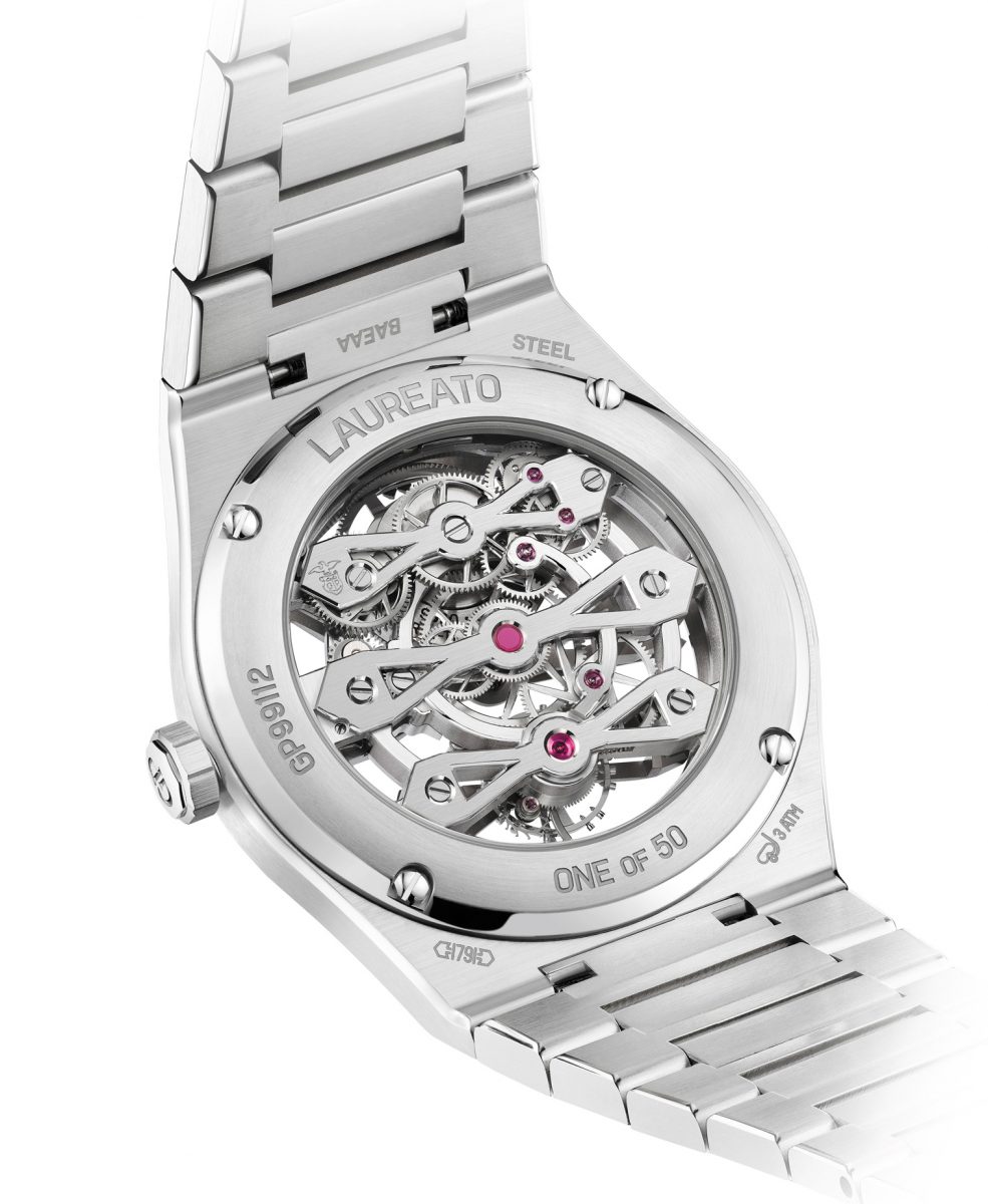 スペック:自動巻き(Cal.GP09620-2206)、毎時2万1600振動、約55時間パワーリザーブ。ステンレススチールケース(シースルーバック)&ブレスレット。直径41mm。30m防水。世界限定50本。