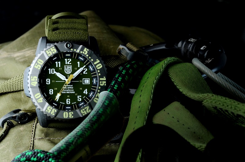 ルミノックス「ミルスペック3350シリーズ」 Ref.3367.OLIVE 16万8300円/クオーツ。カーボノックスケース、ラバーストラップ、サファイアクリスタル風防(無反射加工)。直径46mm、厚さ14mm。30気圧防水。