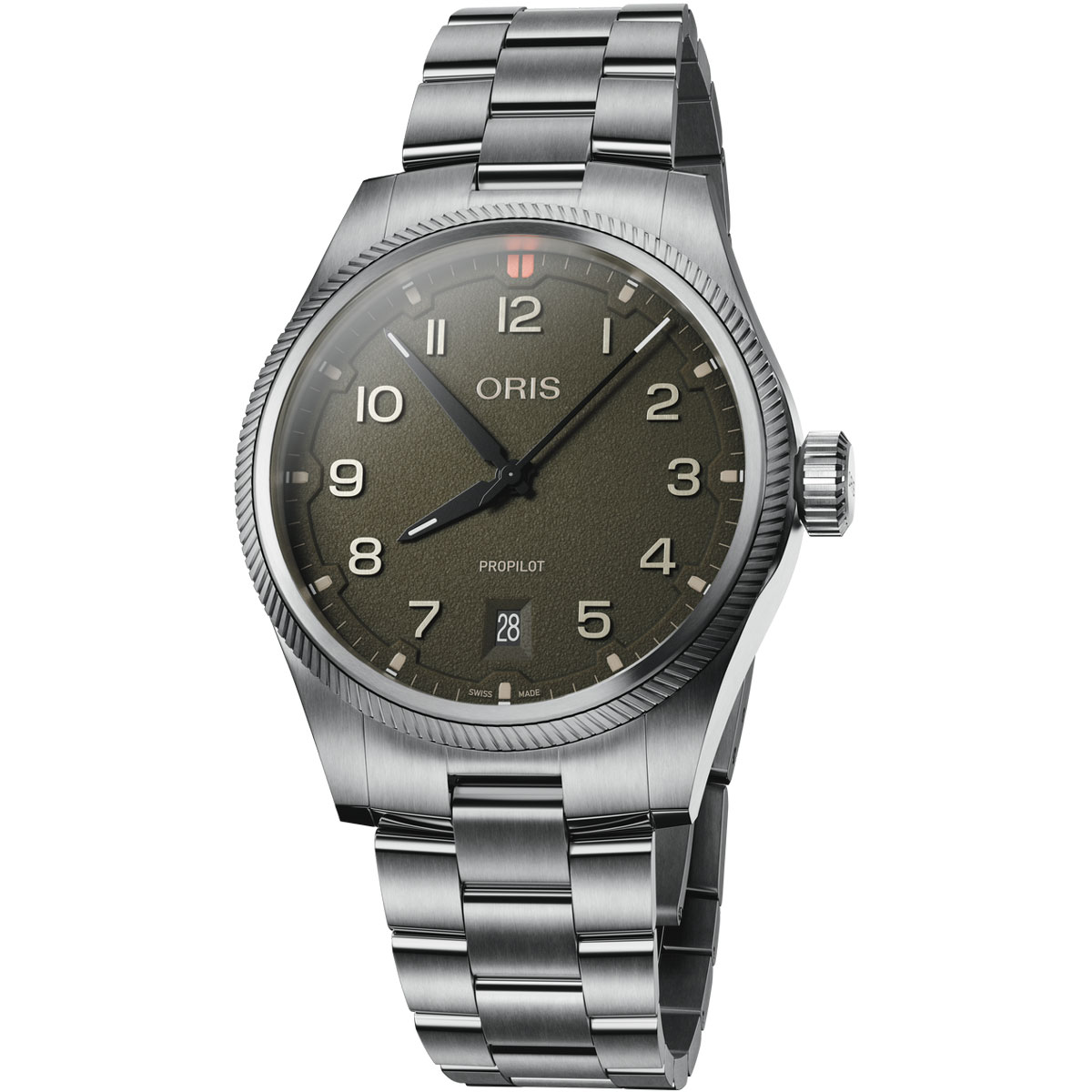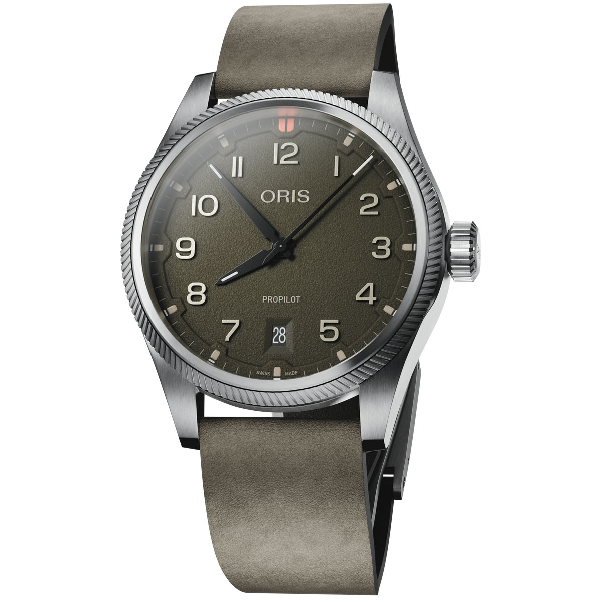 2014年の誕生以来、プロパイロットシリーズは改良を重ねてきたが、2025年モデルではさらに大きな刷新が行われた。41mmの新設計ケースはプロポーションと装着性を最適化し、大型リューズや洗練されたラインにより、プロユースからデイリーまで対応する1本となっている。ダイアルはブラック、チョークグレー、モスグリーンの3色展開で、テクスチャー仕上げの地盤に立体的なダイアルリング、ブラッシュ加工のアプライドインデックスを組み合わせることで、高い視認性と質感を両立している。