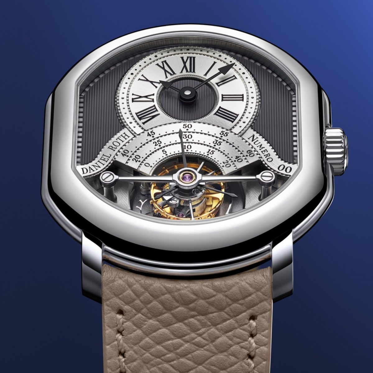 ダニエル・ロートという名は、伝統的なウォッチメイキングと卓越した技術の象徴である。ブランドの第2の黄金時代は、信条である「芸術品としてのウォッチ(La Montre Objet d’Art)」を体現する最新作「トゥールビヨン プラチナ」と共に幕を開けた。1988年のアイコニックなトゥールビヨン REF.2187/C187から着想を得た「トゥールビヨン プラチナ」は、ダニエル・ロート氏が愛した複雑機構と、ハイウォッチメイキングにおけるタイムレスな理想への献身を讃えるモデルである。2023年にブランドが復活した際、最初に発表された「トゥールビヨン」と「エクストラ プラット」は、クル・ド・パリ ギヨシェ模様を纏ったイエローゴールド製の20本限定モデルであった。これに続き、ピンストライプギヨシェのローズゴールド製通常モデルが登場し、ダニエル・ロート復活の礎となった。両モデルは同じデザインコードとウォッチメイキングの原則を共有し、わずかに改良されたダブルエリプスケースと自社製マニュファクチュールムーブメントを備えている。「トゥールビヨン」に搭載されたDR001と「エクストラ プラット」のDR002は、ルイ・ヴィトンの設立者でありマスター・ウォッチメーカーであるミシェル・ナバスとエンリコ・バルバシーニによって特別に開発され、最高水準で仕上げられた独自フォルムのムーブメントである。