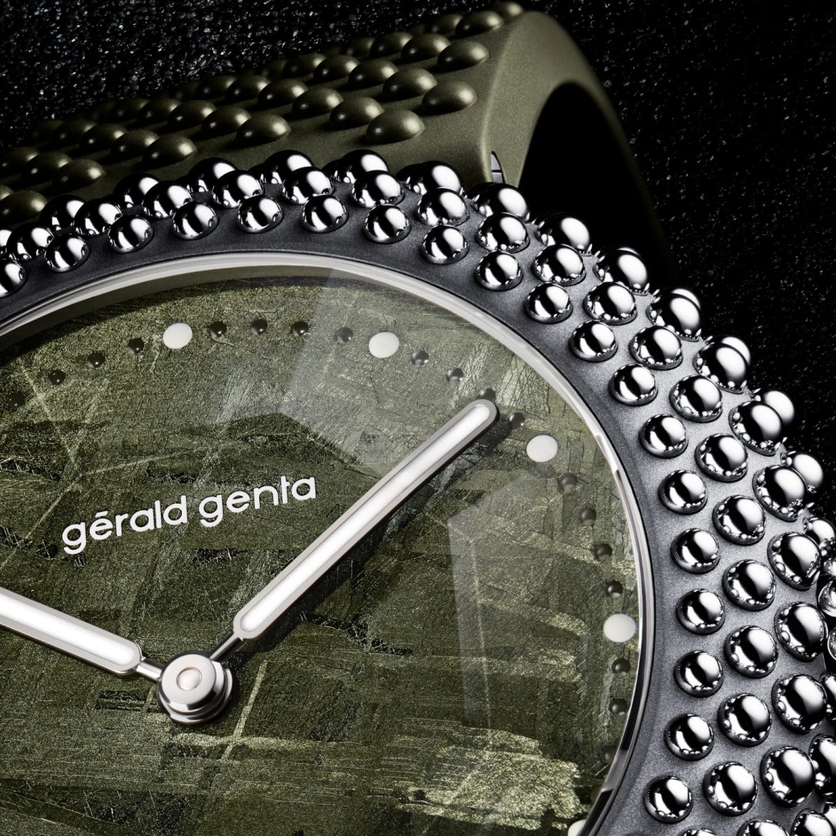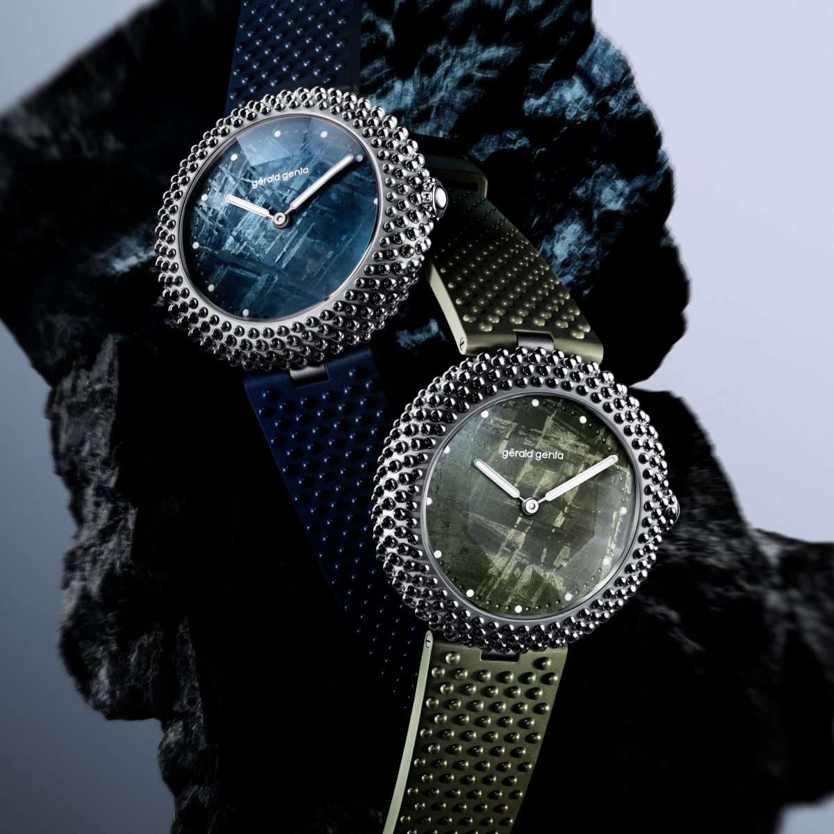 ジェラルド・ジェンタを象徴する「ジェンティッシマ ウルサン」コレクションに、より存在感のある41mmケースを採用した2つの新作が加わった。ブルーとグリーンのメテオライトダイアルを備えた今回のモデルは、宇宙由来の素材ならではの神秘的な表情を宿し、コレクションの魅力をさらに高めている。これまでの36.5mmモデルでは、マザーオブパールの柔らかなピンク、アンスラサイトの深みあるグレー、オパールの炎のような輝き、漆黒のオニキスなど、地球が育んだ多彩な天然素材を文字盤に用いてきた「ウルサン」。41mmとなった新作は、ラバーストラップと50m防水を備え、日常使いにも配慮されたスポーティかつ現代的なデザインが特徴。実用性を重視しつつ妥協のない美学を求めるコレクターに向けた一本だ。なお、ウォッチの設計と組み立てはルイ・ヴィトンの高級時計製作アトリエ「ラ・ファブリク・デュ・タン ルイ・ヴィトン」が手がけている。