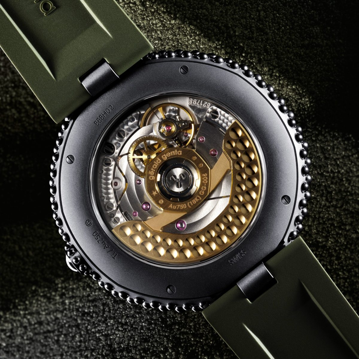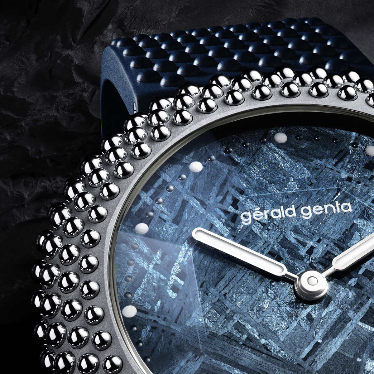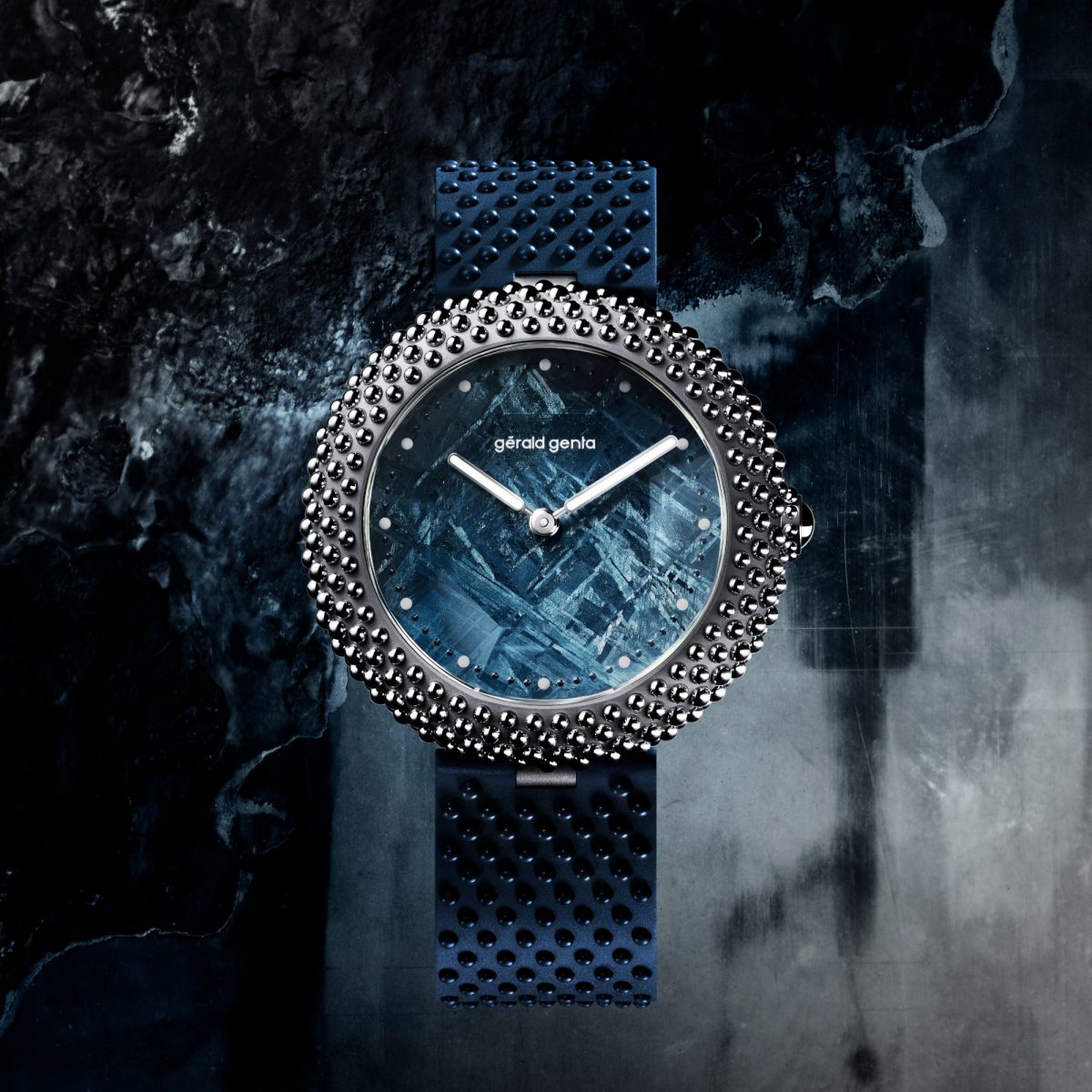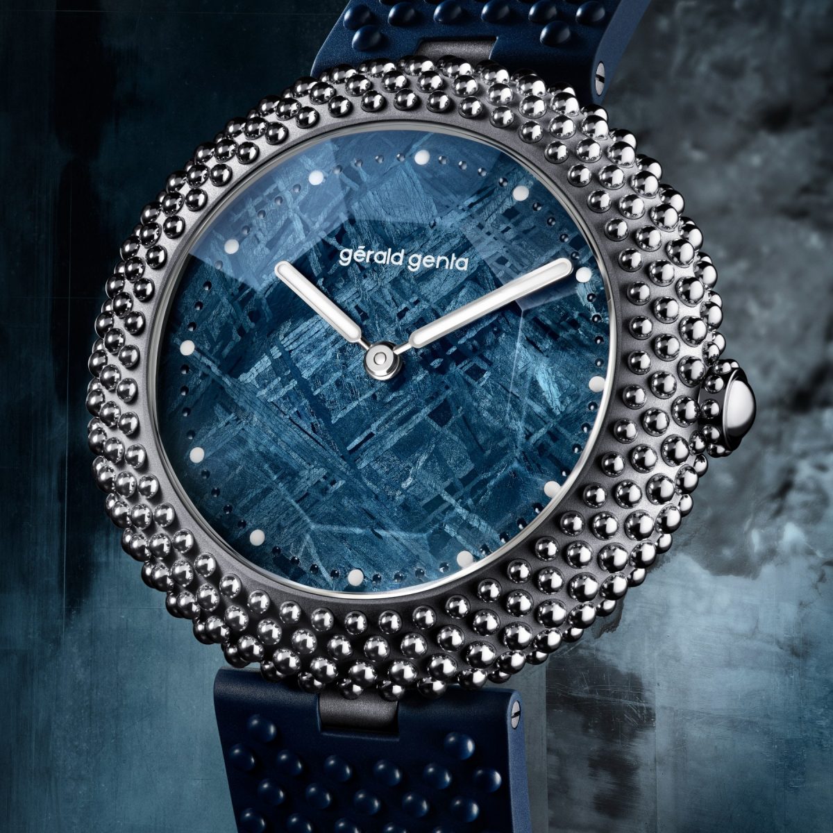 ジェラルド・ジェンタ「ジェンティッシマ ウルサン 41 ブルーメテオライト」 Ref.EEEH01A1 25000スイスフラン(税抜)/自動巻き(Cal.GG-005)、毎時2万8800振動、50時間パワーリザーブ。グレード5チタンケース(シースルーバック)、ラバーストラップ。直径41mm。