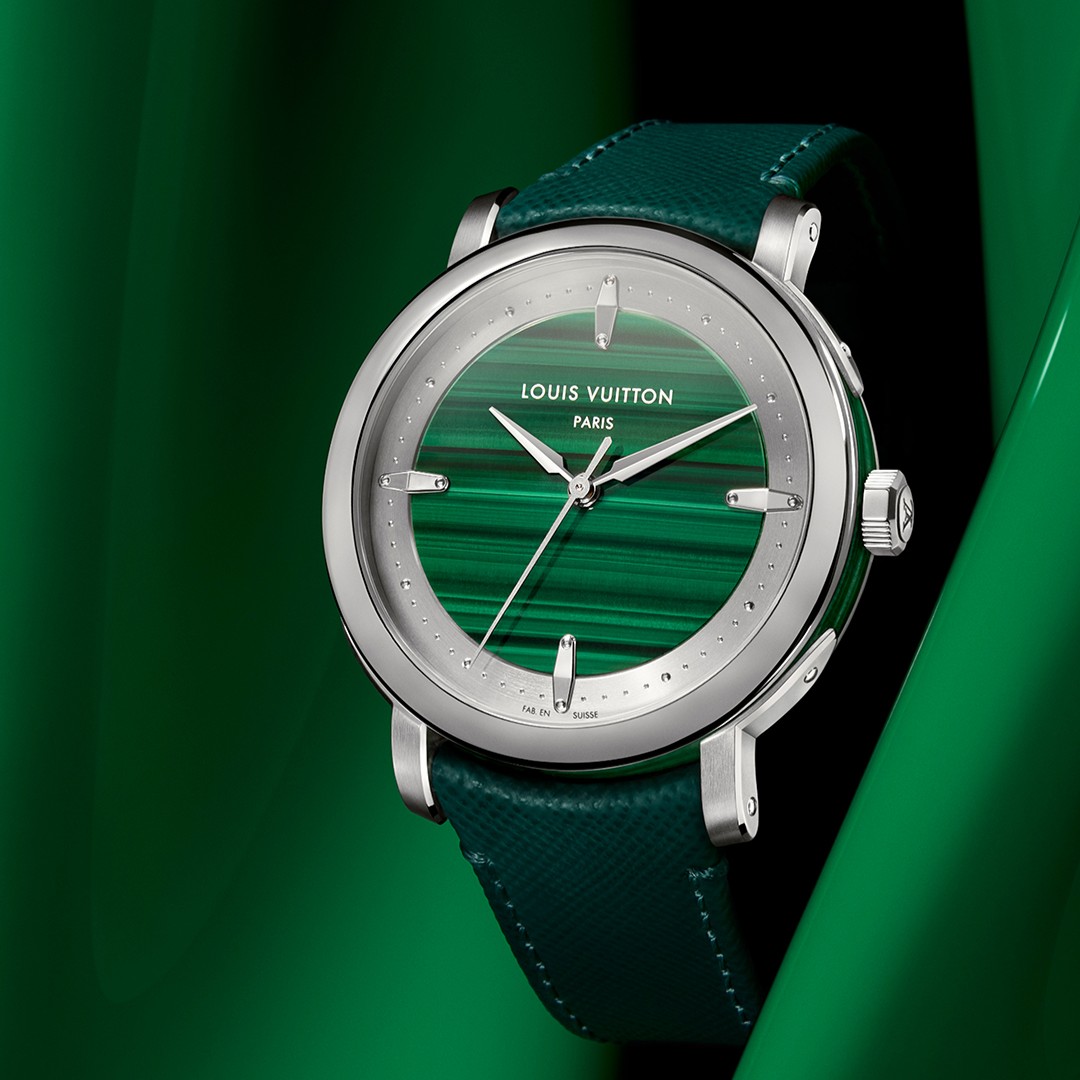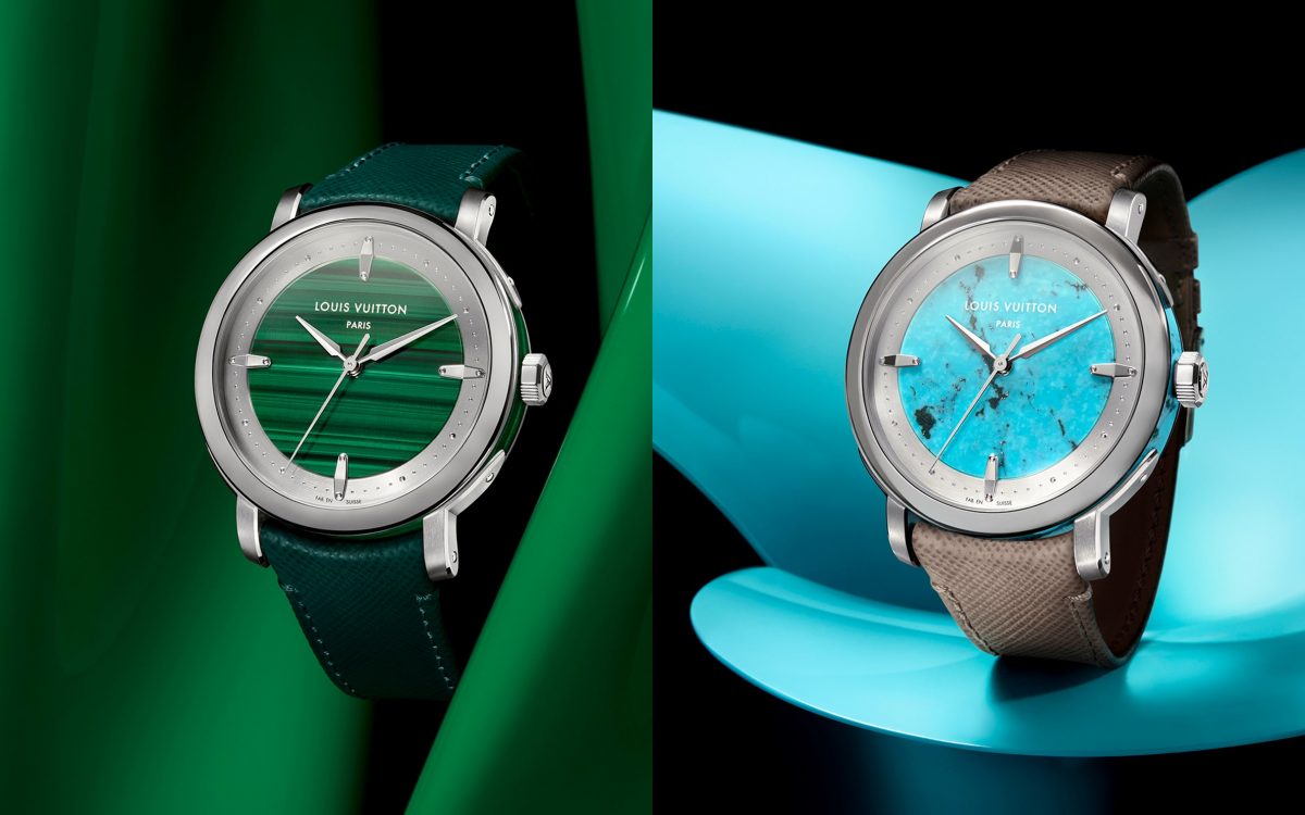ウォッチ・コレクション「エスカル」に、ターコイズとマラカイトをダイアルに用いた2つのリミテッドエディション(各30本)が登場した。40mmケースには、ダイアルと同じ鉱物から切り出された一体型ケースリングを採用し、ラグやベゼル、ケースバックにはプラチナを用いている。鮮やかな天然石の魅力を最大限に引き出すため、極めて高度なクラフツマンシップが注ぎ込まれたモデルだ。