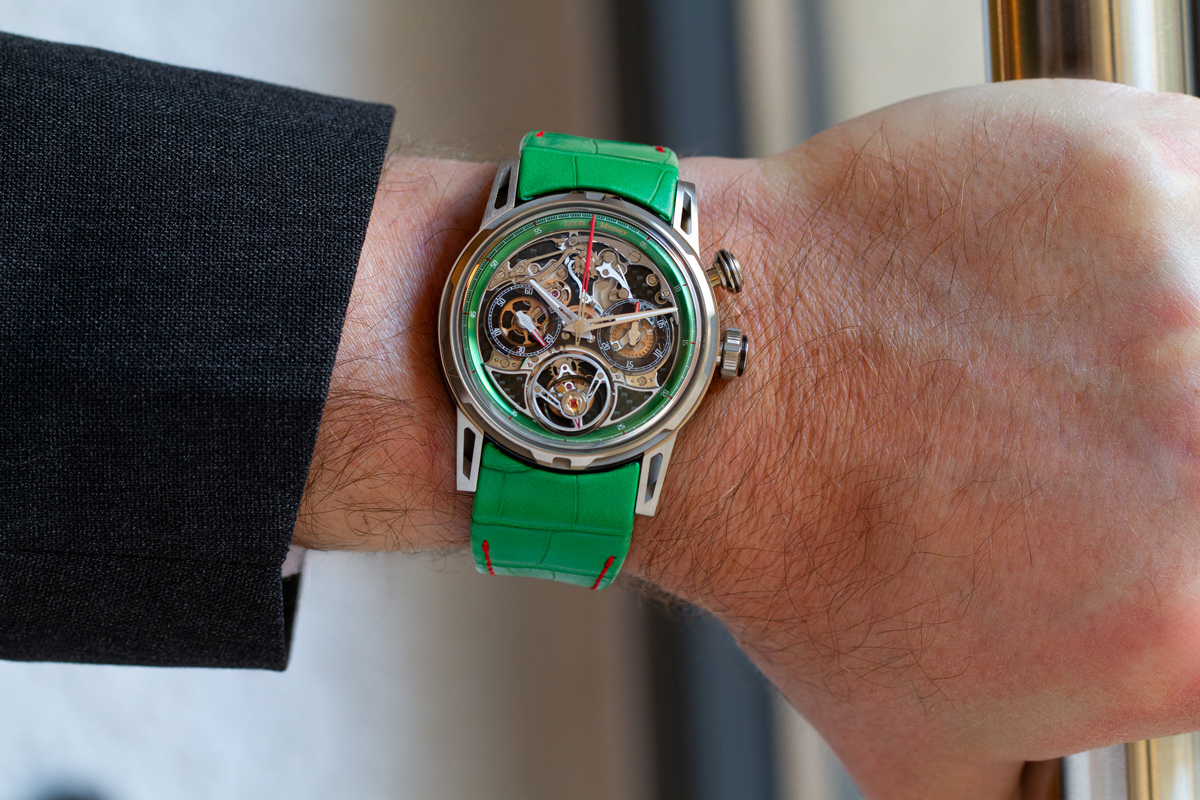 クロノグラフ×トゥールビヨンの躍動をグリーンが彩る