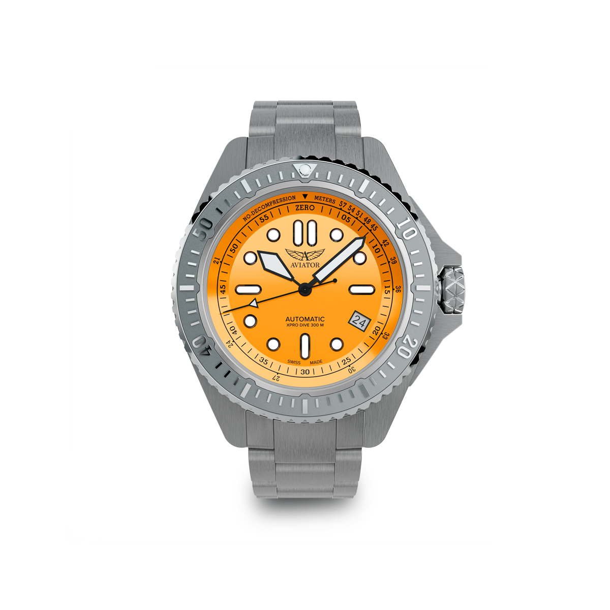 アビエイター「エックスプロ・ダイブ300オート」 Ref.V.1.43.0.366.5 17万6000円/自動巻き(Cal.セリタSW200-1)、38時間パワーリザーブ。316Lステンレススチールケース&ブレスレット、サファイアクリスタル風防。直径42.8mm、厚さ12.6mm。300m防水。