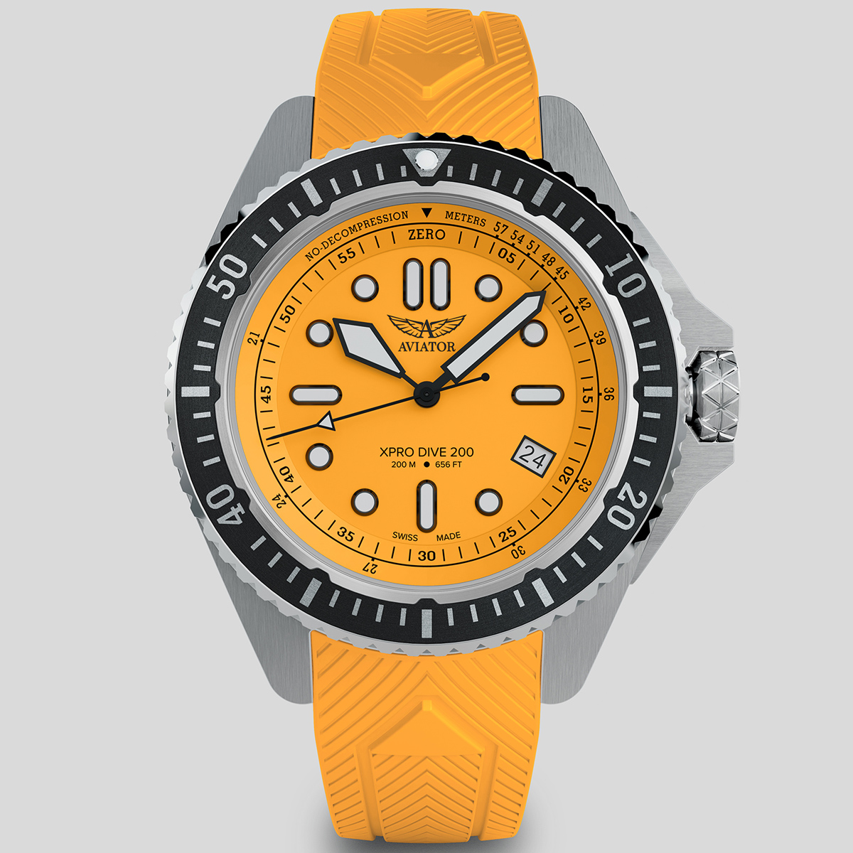 アビエイター「エックスプロ・ダイブ200」 Ref.V.1.42.0.375.0 7万4800円/クオーツ(Cal.ロンダ6003.D)、38時間パワーリザーブ。316Lステンレススチールケース、シリコンストラップ、サファイアクリスタル風防。直径42.8mm、厚さ11.4mm。200m防水。