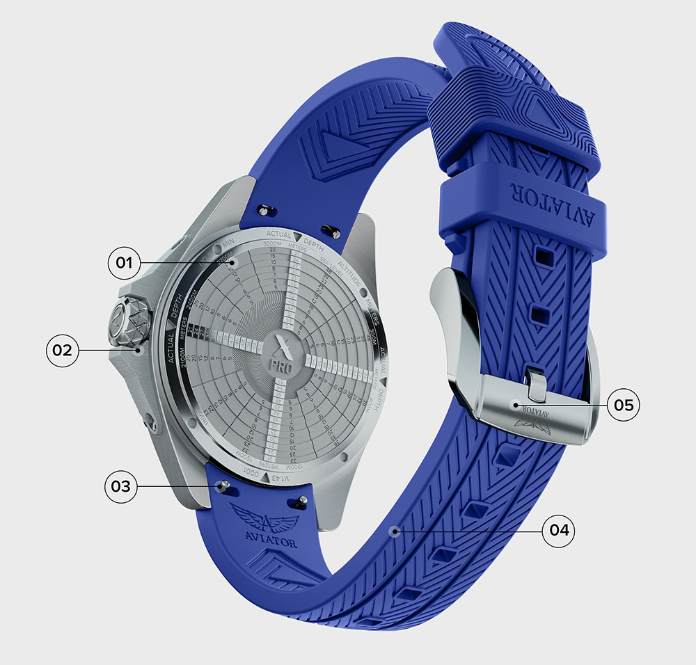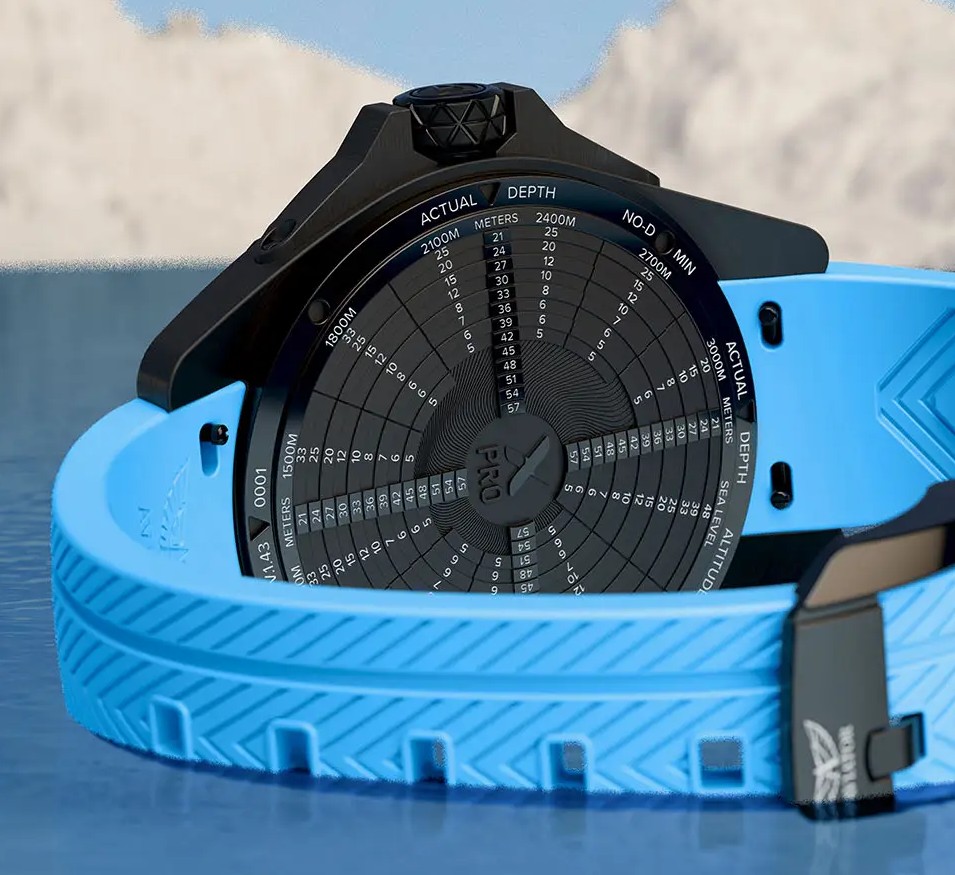 XPROシリーズの最大の特徴は、海抜0mの海洋ダイブと、標高数千メートルの山岳湖ダイブという異なる環境に対応する独自の減圧理論である。高度の変化に伴って体内ガスの挙動が変わる点に着目し、Navy SEALs Diving Manualを基に再構築した高度別NDLテーブルを開発。ケースバックにはこのテーブルを精密に刻印し、ベゼルの計測機能と組み合わせることで、極地においても正確な潜水管理が可能となっている。