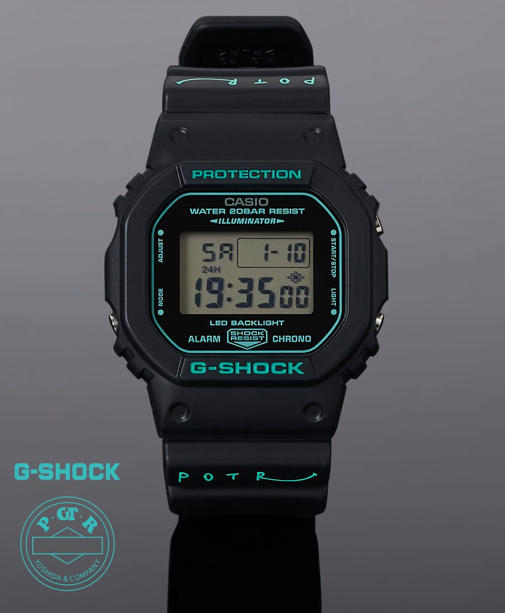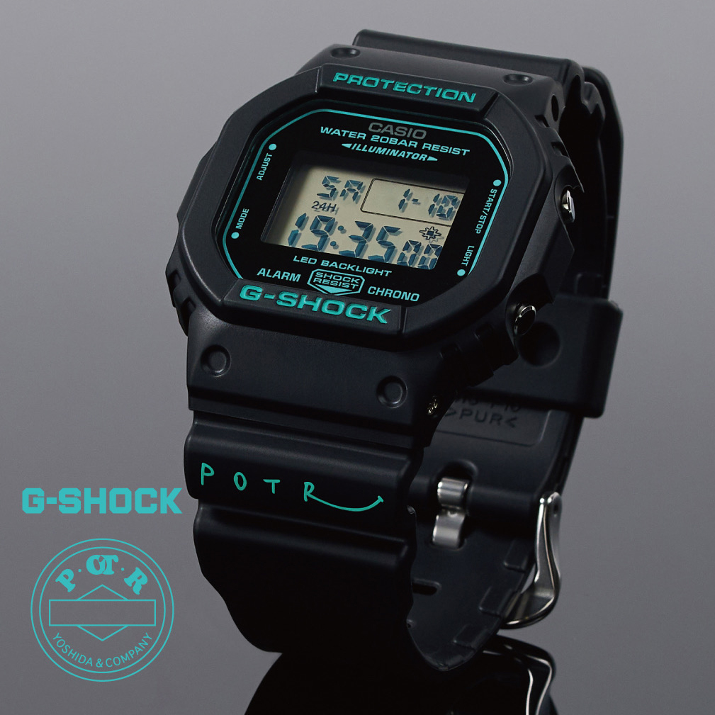 1983年に初登場した耐衝撃ウオッチ「G-SHOCK」と、日本を代表するバッグメーカーである吉田カバンのライフスタイルブランド「POTR(ピー・オー・ティー・アール)」が、両社のフィロソフィーを持ち寄り、開発したのが新作「G-SHOCK × POTR DW-5600」となる。