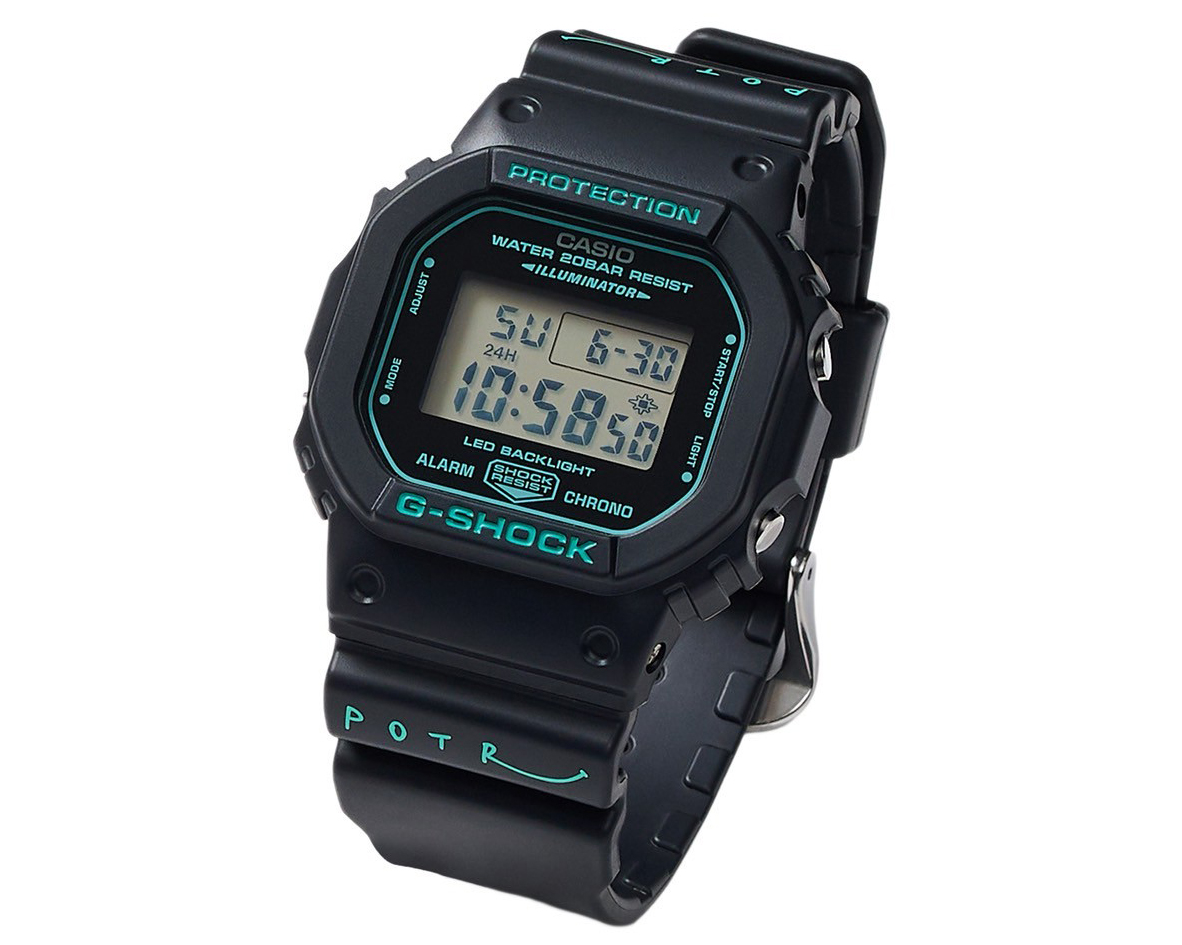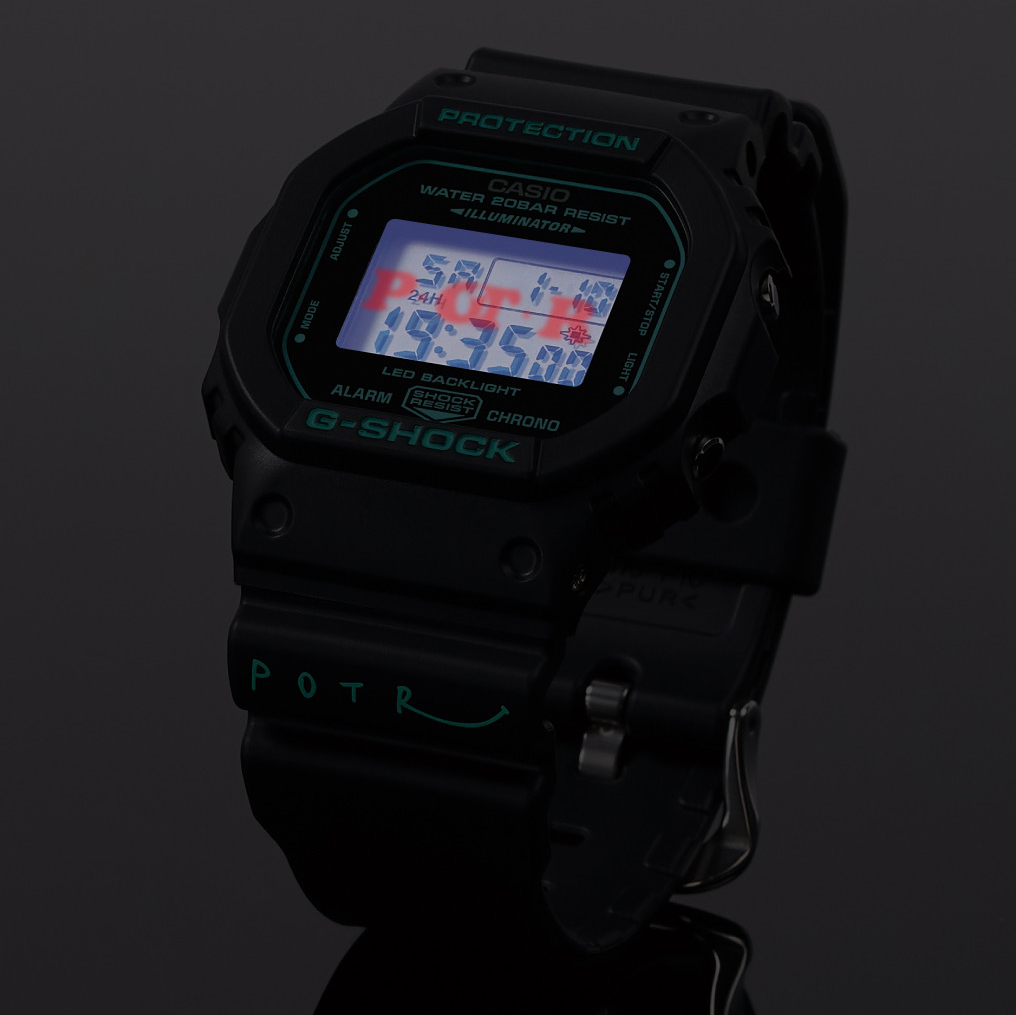 G-SHOCK「G-SHOCK × POTR DW-5600」 2万5300円/クオーツ。樹脂ケース&バンド。縦48.9×横42.8mm、厚さ13.4mm。20気圧防水。