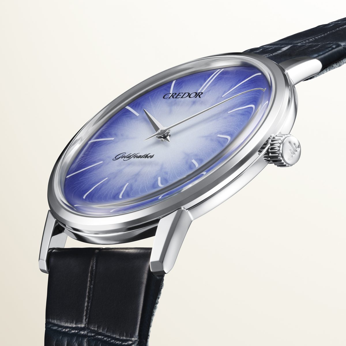 白から青へと神秘的なグラデーションを描く伊万里鍋島焼文字盤の「クレドール」特別限定モデル