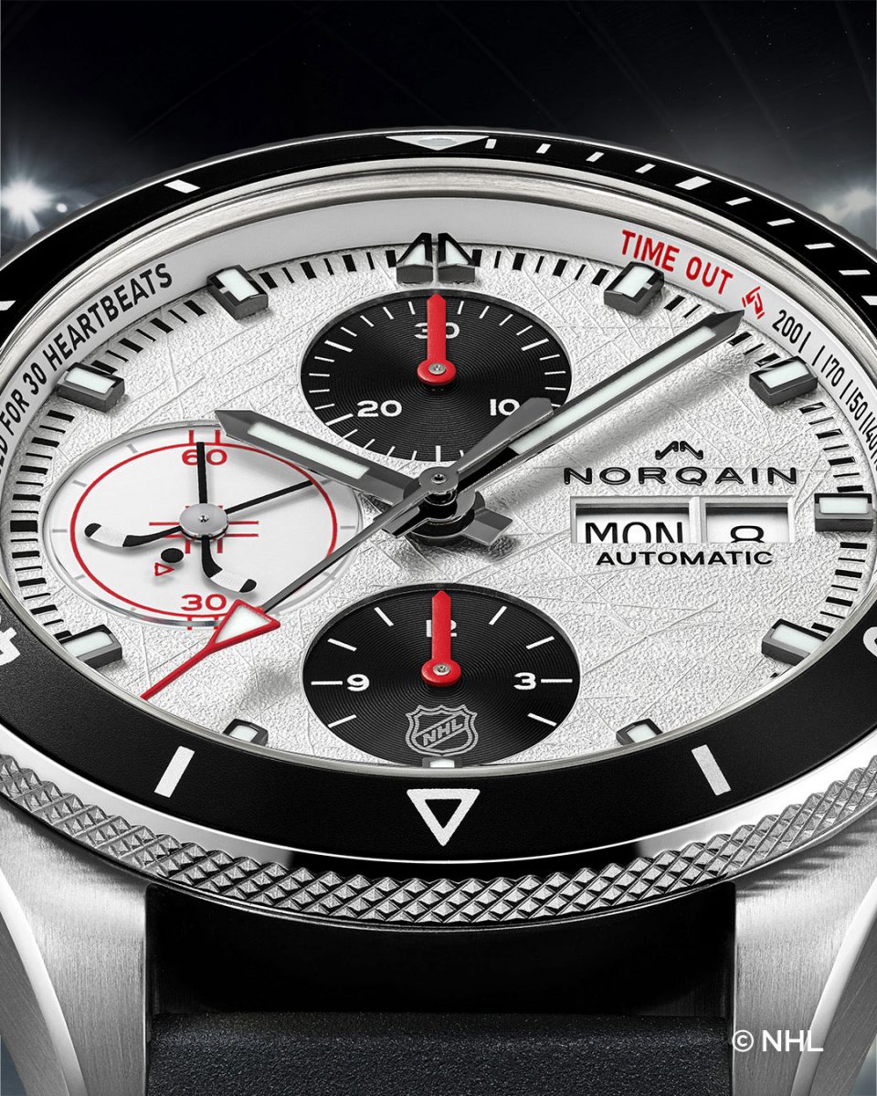 スイスの独立系ウオッチブランド【ノルケイン(NORQAIN)】が、NHL(ナショナルホッケーリーグ)とのパートナーシップ締結を記念する限定モデル「アドベンチャー クロノ 41mm NHL リミテッド エディション」を発表した。1917本の限定生産。価格は79万7500円。