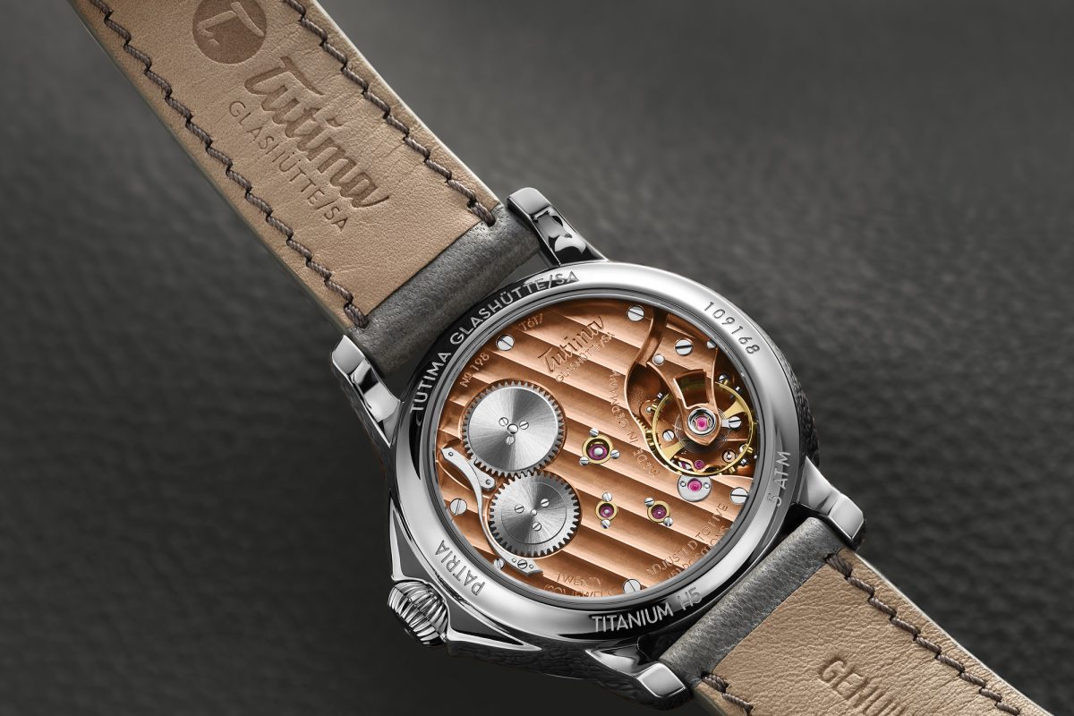 チュチマ・グラスヒュッテ「パトリア」 Ref.6612-11 139万7000円/手巻き(Tutima Cal.617)、約65時間パワーリザーブ。グレード5チタンケース(シースルーバック)、グレーのシープスキンレザーストラップ。直径41mm、厚さ11.2mm。5気圧防水。今夏発売予定。