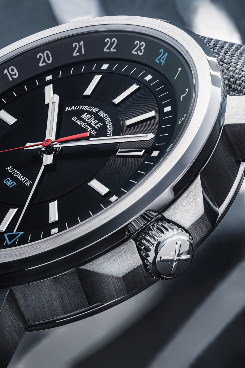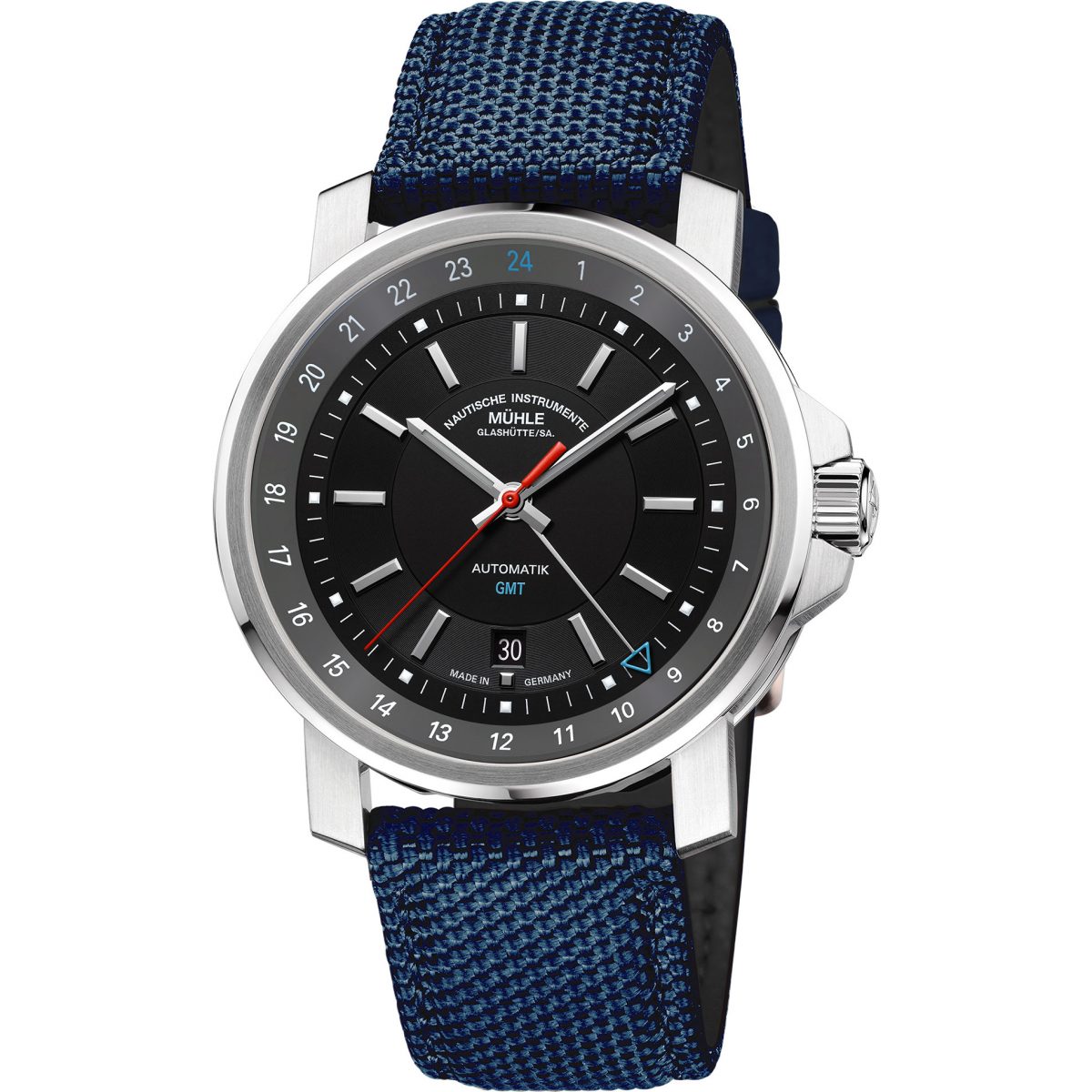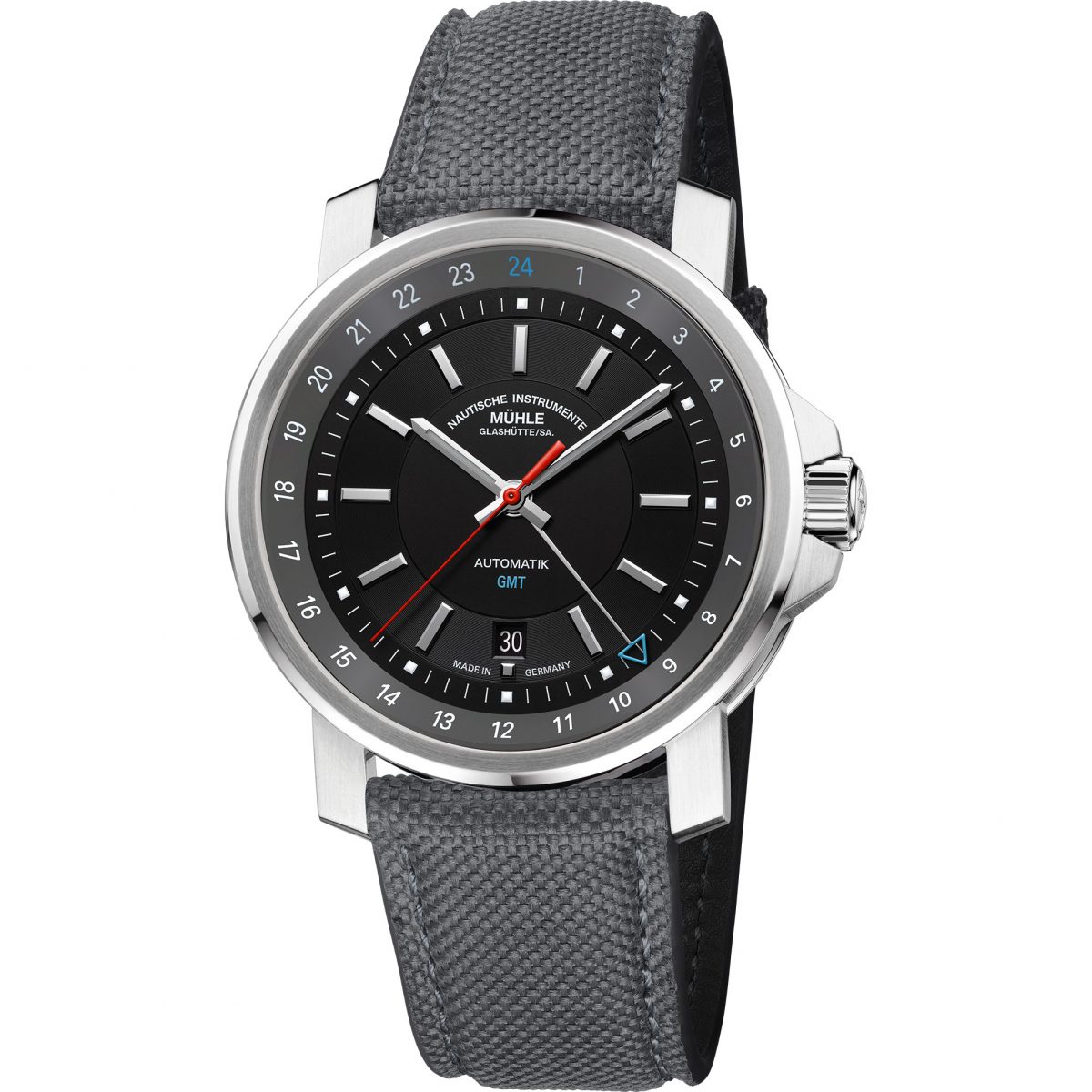 ミューレ・グラスヒュッテ「29er Big GMT」 キャンバスストラップ 47万3000円。レザーストラップ 47万3000円/自動巻き(Cal.SW 330-2)、約56時間パワーリザーブ。ステンレススチールケース(シースルーバック)。直径42.4mm、厚さ10.3mm。10気圧防水。