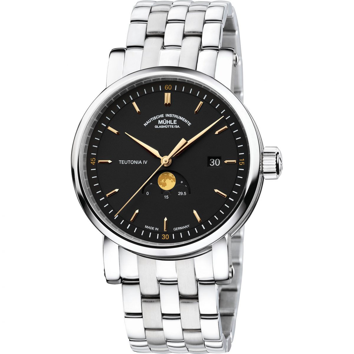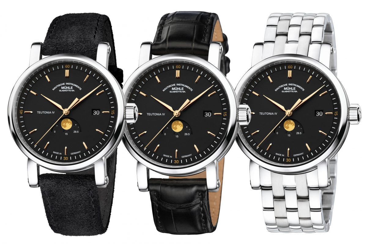 ミューレ・グラスヒュッテ「Teutonia IV Moonphase」 メタルブレスレット52万8000円、レザーストラップ、スエードストラップ 50万6000円/自動巻き(Cal.SW 280-1)、約41時間パワーリザーブ。ステンレススチールケース(シースルーバック)。直径41.0mm、厚さ12.6mm。10気圧防水。