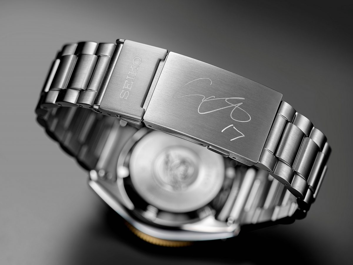 細部へのこだわりも見どころであり、リューズには大谷選手の背番号「17」を刻印し、中留には大谷選手のサインをマーキング。ケースバックには「SHOHEI OHTANI LIMITED EDITION」の文字とともに、限定モデルであることを証明するシリアルナンバーを見ることができる。ブレスレットには、約15mmの範囲内で2.5mmずつ、6段階の微調整が可能な新開発のクラスプを採用し、季節や体調による腕周りの変化にもフレキシブルに対応する。