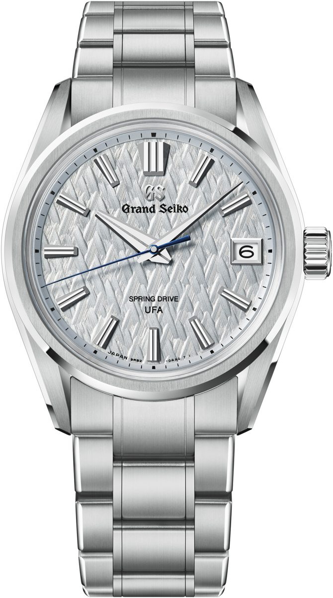 同イベントの最大の焦点は、時計の顔であるダイヤルだ。そこには、日本の風土が育んだ自然観と匠の技が凝縮されている。たとえば、ブランドを代表する「Evolution 9 Collection メカニカルハイビート36000 SLGH005」は、製造地である「グランドセイコースタジオ 雫石」近隣に広がる白樺林の風景をモチーフに選択。高原の澄んだ空気の中で、すらりと高く伸びた白樺が幾重にも重なり合う神秘的な光景を、ダイナミックな型打模様と繊細なカラーリングによって見事に再現。また、同じく「Evolution 9 Collection」から登場したスプリングドライブモデル「U.F.A. SLGB003」は、信州・霧ヶ峰の雪原に広がる「樹氷」をテーマに据えている。澄み切った大気の中で光を浴びて煌めく樹氷の美しさを、精緻な型打模様と淡いブルーの表面加工で封じ込めた。これらのデザイン表現が、今回のミラノでの展示においてクリエイターたちが再解釈する源泉となっている。