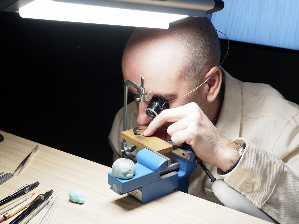 オーデマ ピゲは今年、「CRAFTING TIME(時を紡ぐ)」をブランドテーマとして掲げた。そして2月3日にスイス中央部の高原渓谷アンデルマットで開催された新作発表会「APソーシャルクラブ」では、そのテーマを体現するかのようにメゾンが150年に渡って継承・研鑽してきたさまざまな時計製作技術の実演を交え、それらにまつわるモデルがプレゼンテーションされた。例えば地板やブリッジの糸鋸による手作業のオープンワークや、その後の面取り・仕上げを実演する作業台では、スケルトンウオッチの新作が披露されるといった具合に。他にもジェムセッティングや、ふたつのパーツの間に融点が低い金属片(ロウ)を置き、それをバーナーであぶって溶かして接合するロウ付け、ヒゲゼンマイの外側終端カーブを手曲げして形作る様子などが招待客の眼前で実演された。